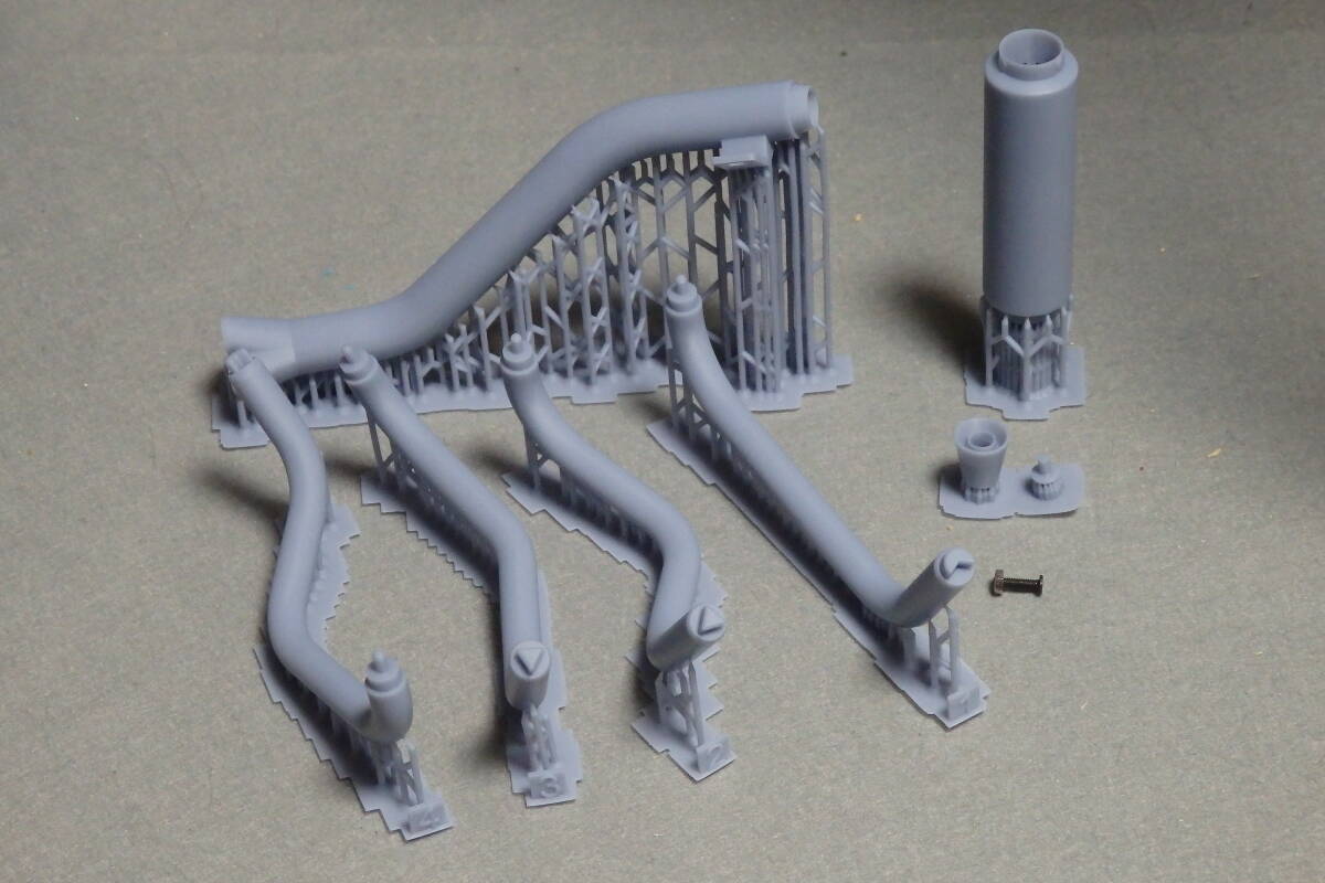 組み立てはテールパイプの集合部に1から4番までのエキパイを接着する形となります。