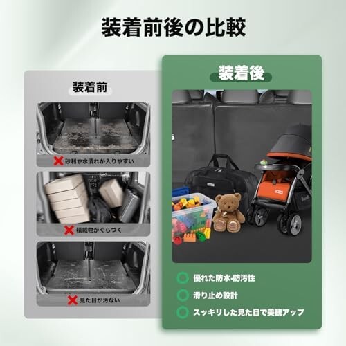 NXの美しいラゲッジを、もっとタフに、もっと使いやすく。20系専用設計(2021.11〜現行)で隙間なくフィット。見た目もスマート 表面PVCの防水・防汚+滑り止めで、濡れたキャンプギアやゴルフバッグも安心 T40高密度スポンジが衝撃を吸収し、荷物のガタつきとキズを軽減 裏面フックがしっかり固定。急ブレーキでもズレにくい 汚れはサッと拭くだけ、丸めて収納OK。取付は敷くだけ 海帰りの砂、雨の日の買い物、ベビーカーやペットの移動まで。愛車を守りながら、積むたび気持ちいい空間に。【適合車種】 レクサス NX 20系(2代目) 対応グレード:NX250 / NX350 / NX350h / NX450h+ 年式:2021年11月~現行 ご注意:グレードやオプション装備により形状が異なる場合があります。ご購入前に実車の形状・年式・モデルをご確認ください。 【素材・機能】 表面:高品質PVC素材 防水:水分が染み込みにくく、濡れた荷物も安心 耐汚れ:汚れを拭き取りやすい 滑り止め:走行中の荷物のガタつきを軽減 耐摩耗:重い荷物の積載にも対応 内部:T40高密度スポンジ 弾力性に優れ、折り曲げ後もしばらくで元の形状に復元 底面:マジックテープ(フック面) フェルト地にしっかり固定し、ズレを防止 【取り付け・収納】 車種専用設計でフィット感良好 工具不要で簡単取付 トランク底面がフェルト仕上げでない場合も、付属マジックテープで固定可能 柔らかな質感で、丸めて省スペース収納が可能 【保証・サポート】 メーカー直営・90日保証 不具合等は、アカウントサービス > 注文履歴 > 販売元 > 質問する よりご連絡ください。 【ご確認事項】 画像・説明は代表例です。実際の仕様は車両の装備により異なる場合があります。購入前に必ず適合をご確認ください。 >