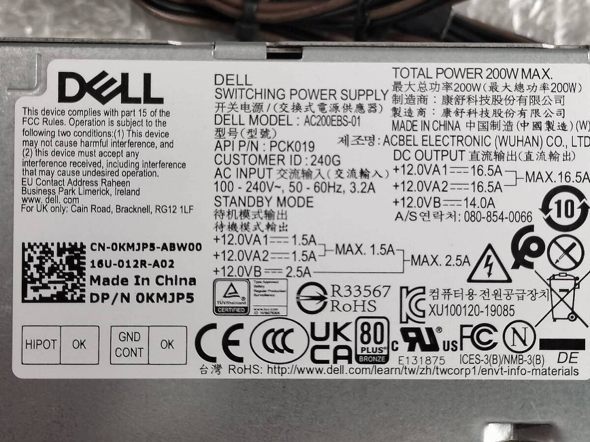 | 商品名稱 : | ☆ DELL Optiplex SFF用 3080など 中古電源ユニット 型番AC200EBS-01 6pin+4pin+4pin ☆ |
