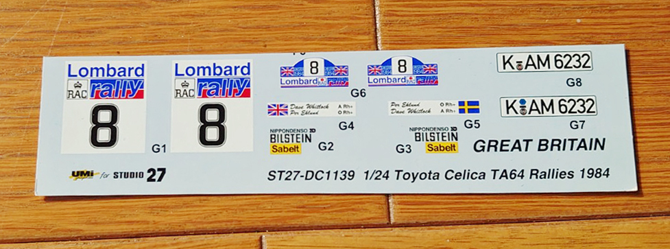 1/24 スタジオ27 トヨタ セリカTA64 ラリー デカール RAC1984