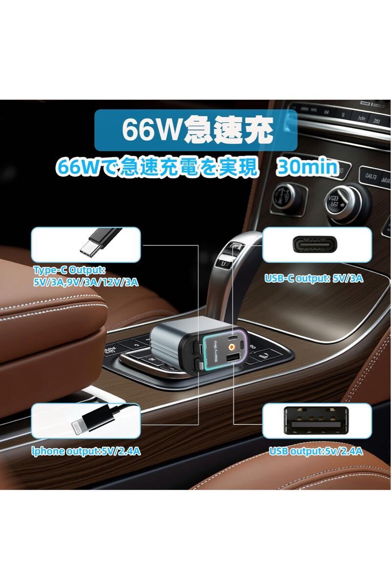 【4機器同時充電対応】USBポート2基と巻き取り式ケーブル2本を装備し、最大4台のデバイス同時充電が可能。家族旅行時の電子機器充電に最適なだけでなく、車所有の方への贈り物としても最適です。Android/iOSシステムに対応し、iPhone 16 Pro MaxなどのType-Cデバイス高速充電を実現し、従来にない車載充電ソリューションを提供します。