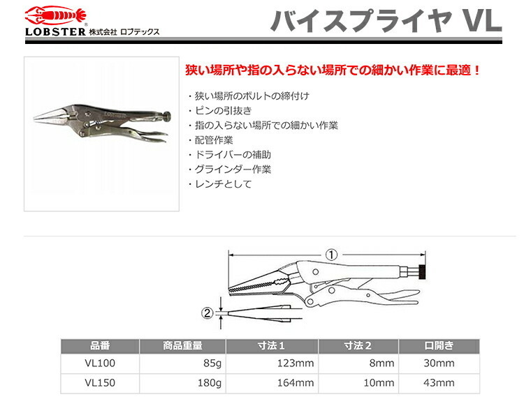 | 商品名稱 : | 数量限定 〈ロブテックス〉バイスプライヤ VL100 JAN:4963202043281 |