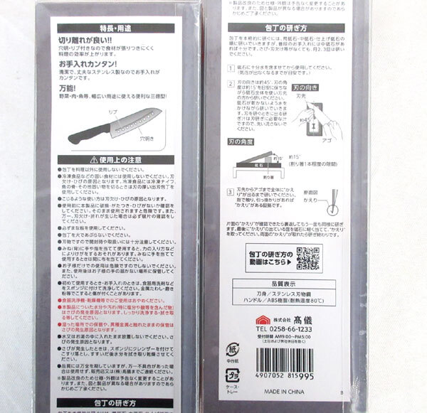 | (250515)高儀 ステンレス穴明三徳包丁 3点 | |