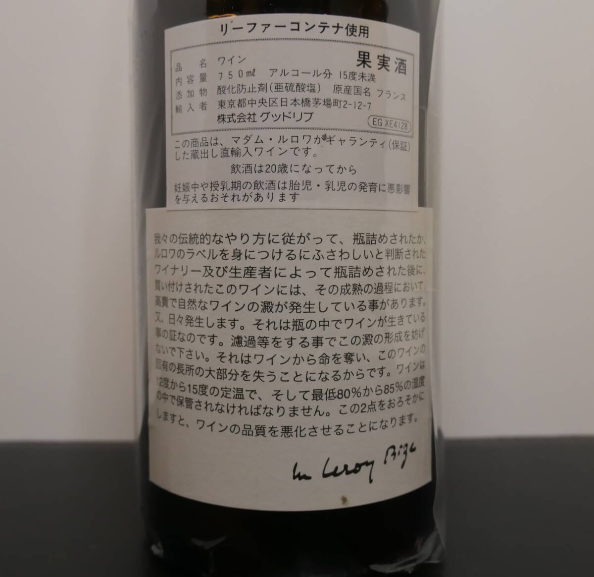 ルロワのすごさは、このメゾンものほどよくわかる、とは昔から言われておりますが、確かに少し熟成させたメゾンものは、ルロワの審美眼、というか味覚がどれだけ常人離れしているかがとてもよく伝わってくるように思います。