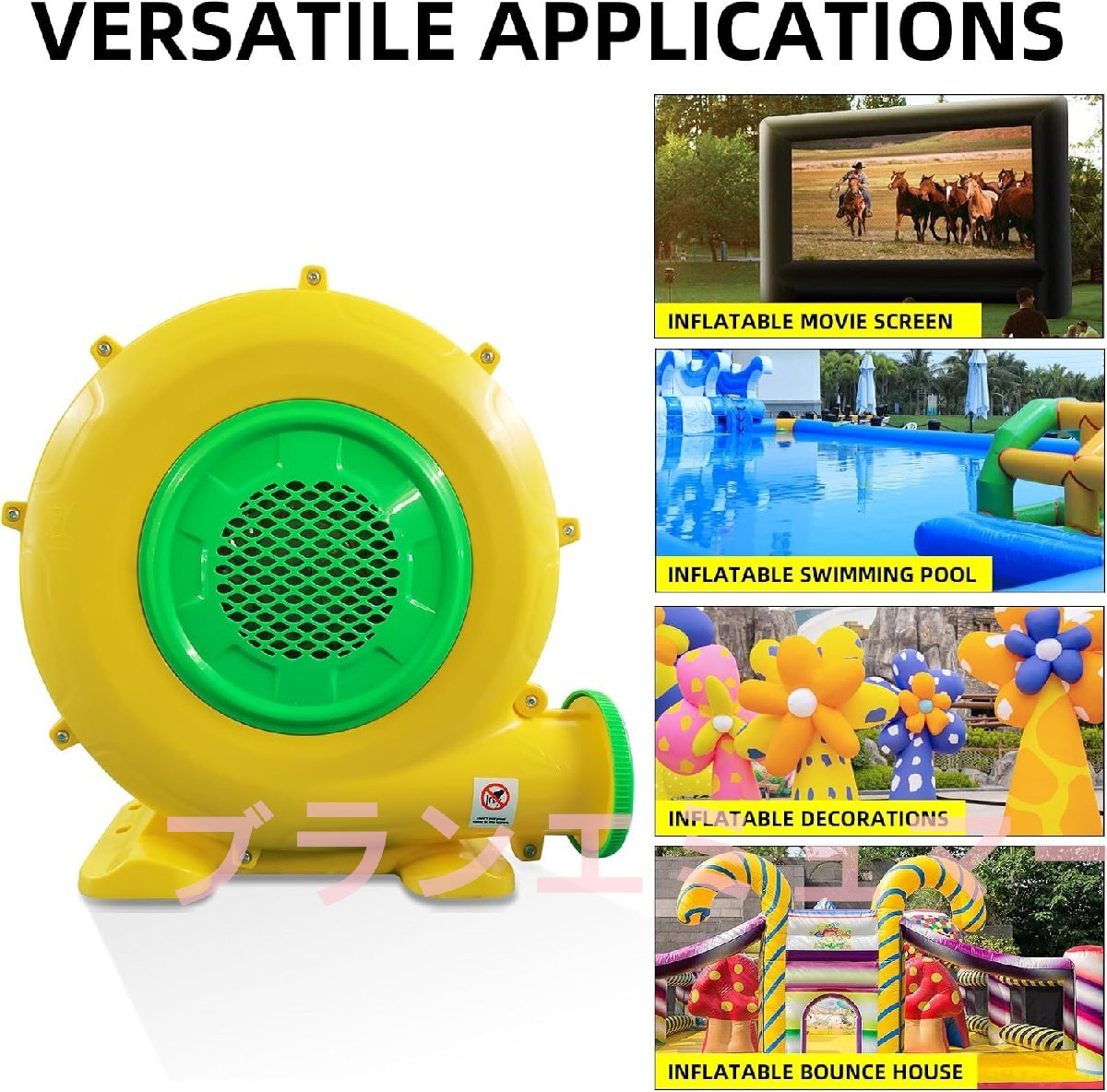 【幅広い用途】この送風ファンは、屋外のバウンスハウス、ウォータースライド、水プール、障害物コース、塗装スプレーブース、膨張式ソファ、その他の適切なインフレータブルバウンスハウスに適しています。 ご購入前に、送風機がインフレータブル製品のニーズを満たしているかどうかをご確認ください。