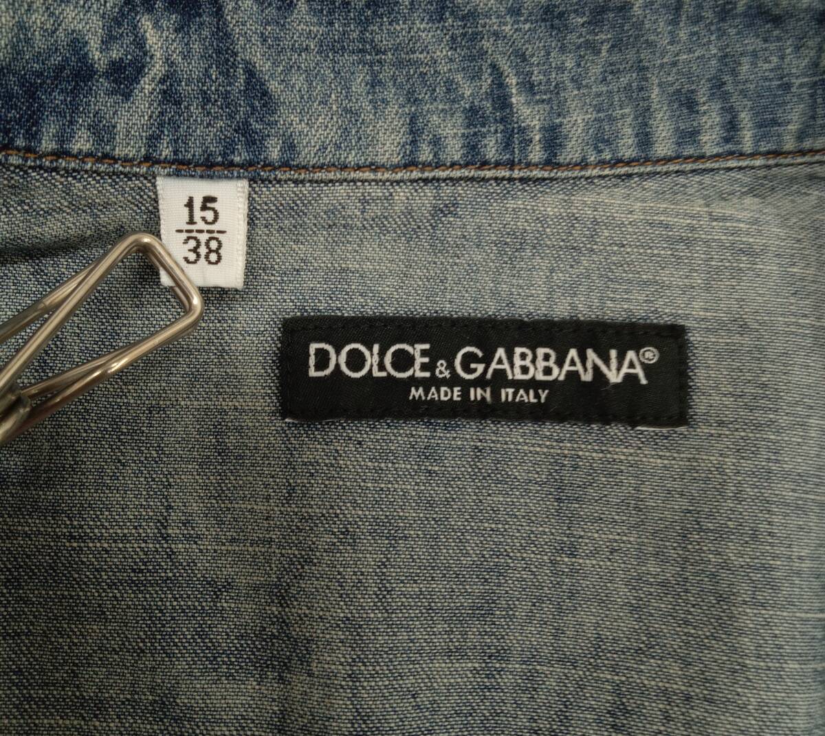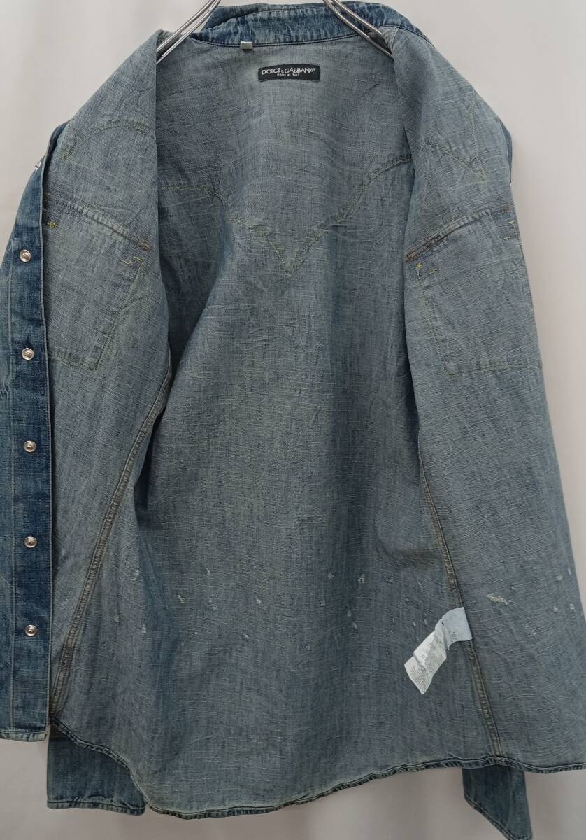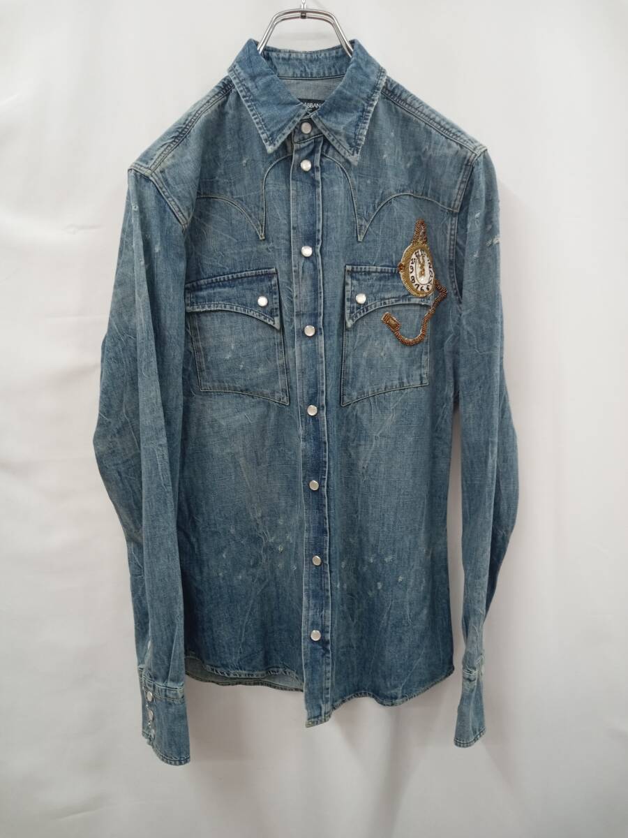 DOLCE&GABBANA ドルチェ アンド ガッバーナ 長袖シャツ デニムシャツ 時計ビジュ ダメージ加工 38 ブルー 通年