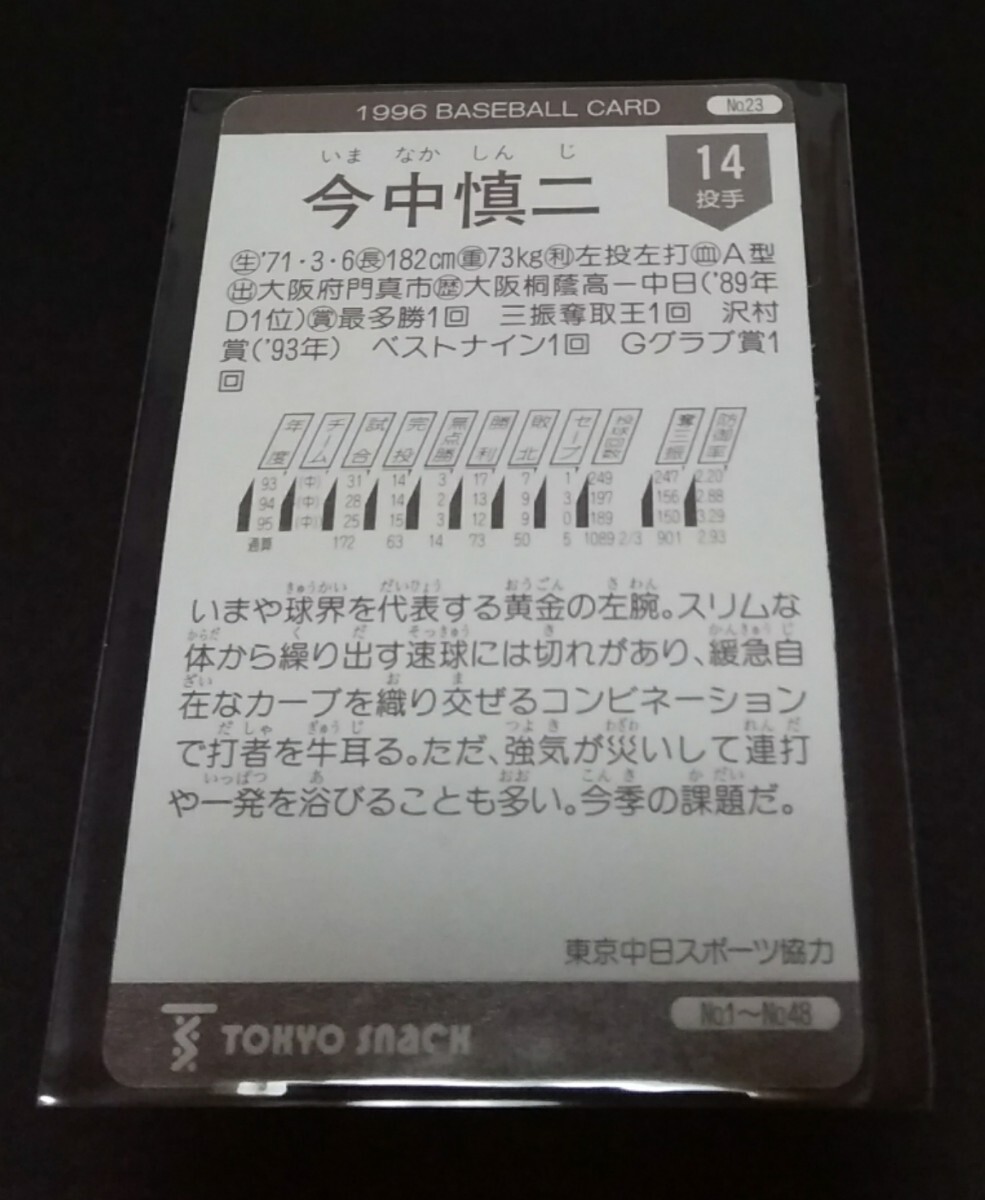 | 商品名稱 : | 1996年カルビー 今中慎二(中日)No,23。 |