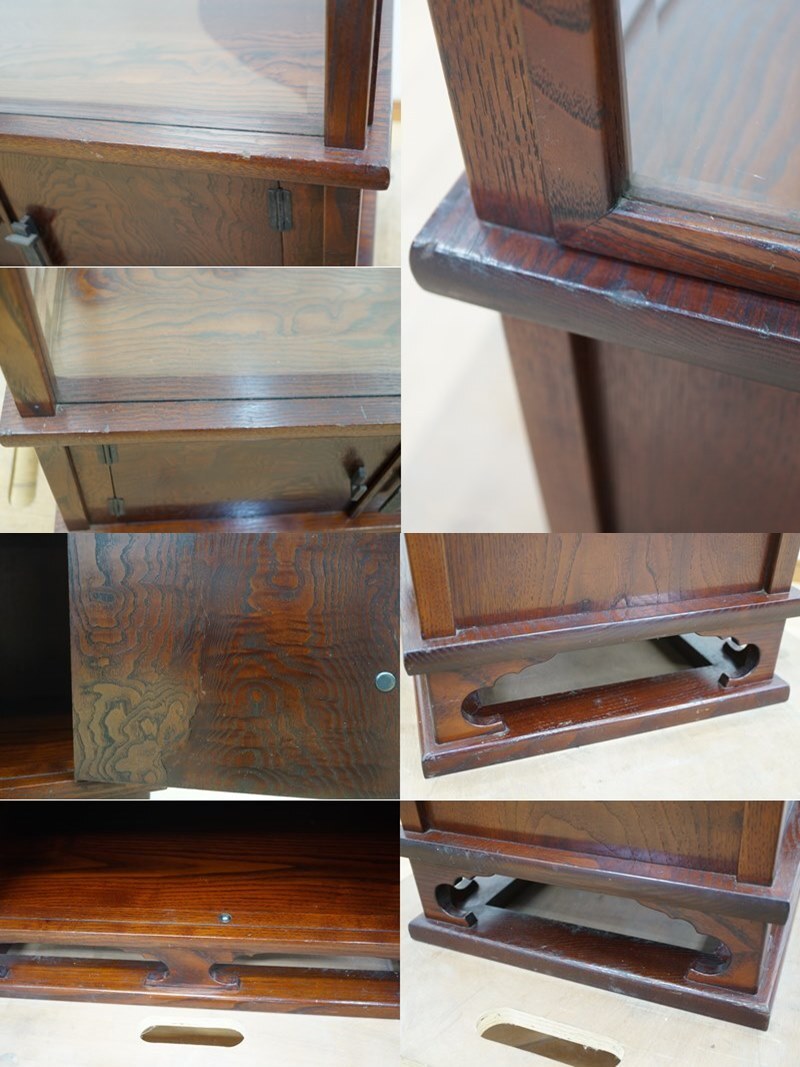 ■東ハ:【天然木】木枠ガラス ショーケース 幅約65㎝ 高さ約103㎝ 5面ガラス 陳列棚 ガラス棚 飾り棚 店舗什器 ディスプレイ★直接引取 ■ レトロスタイルなインテリア、和モダンインテリアにおススメの 「 5面ガラス 木枠ガラスショーケース 」になります。 天面、前面から背面までぐるりとガラス仕様のため圧迫感を感じさせず、 足元も透かし彫りで重厚感のある造りとなっています。 場の雰囲気を格調高く演出したい、 ご自宅や店舗什器としていかがでしょうか。 【サイズ】 (約)高さ103.0 × 幅65.0 × 奥行35.0 cm 中古のお品となります。 付属品は写真にあるものが全てです。 使用に伴うヨゴレ・キズ・小さなヘコミなどが複数、金具にサビがございます。 ガラスに小キズ・薄い欠け、正面向かって左側面扉の開閉時にかたさがございます。 商品画像をよくご確認の上、ご参加ください。 [管理No.24110862R1] |
