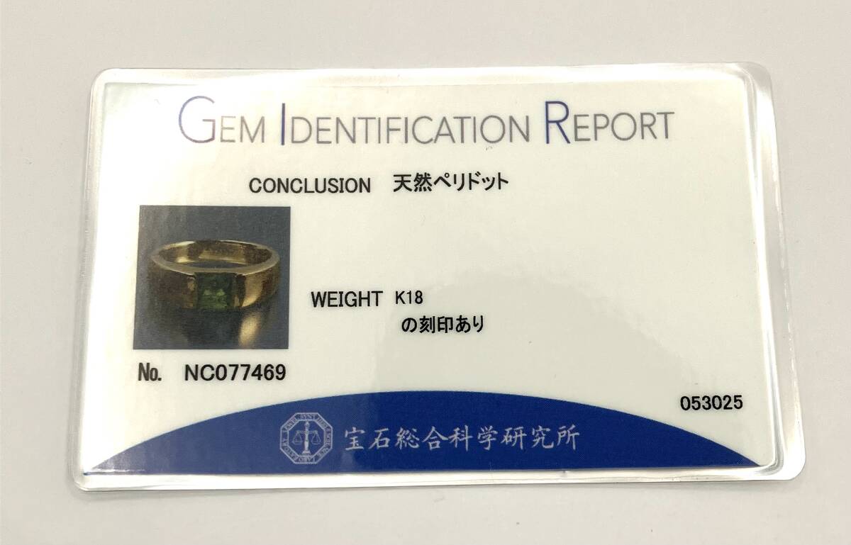 | 商品名稱 : | 天然ペリドット K18 リング 9号 5.1g ソーティング付き |