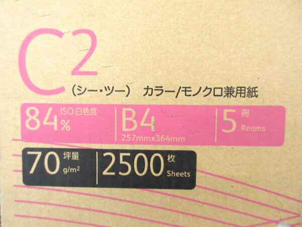 | 内 容 | ■富士ゼロックス コピー用紙 C2 カラー/モノクロ兼用紙 B4 ■500枚×5冊 |