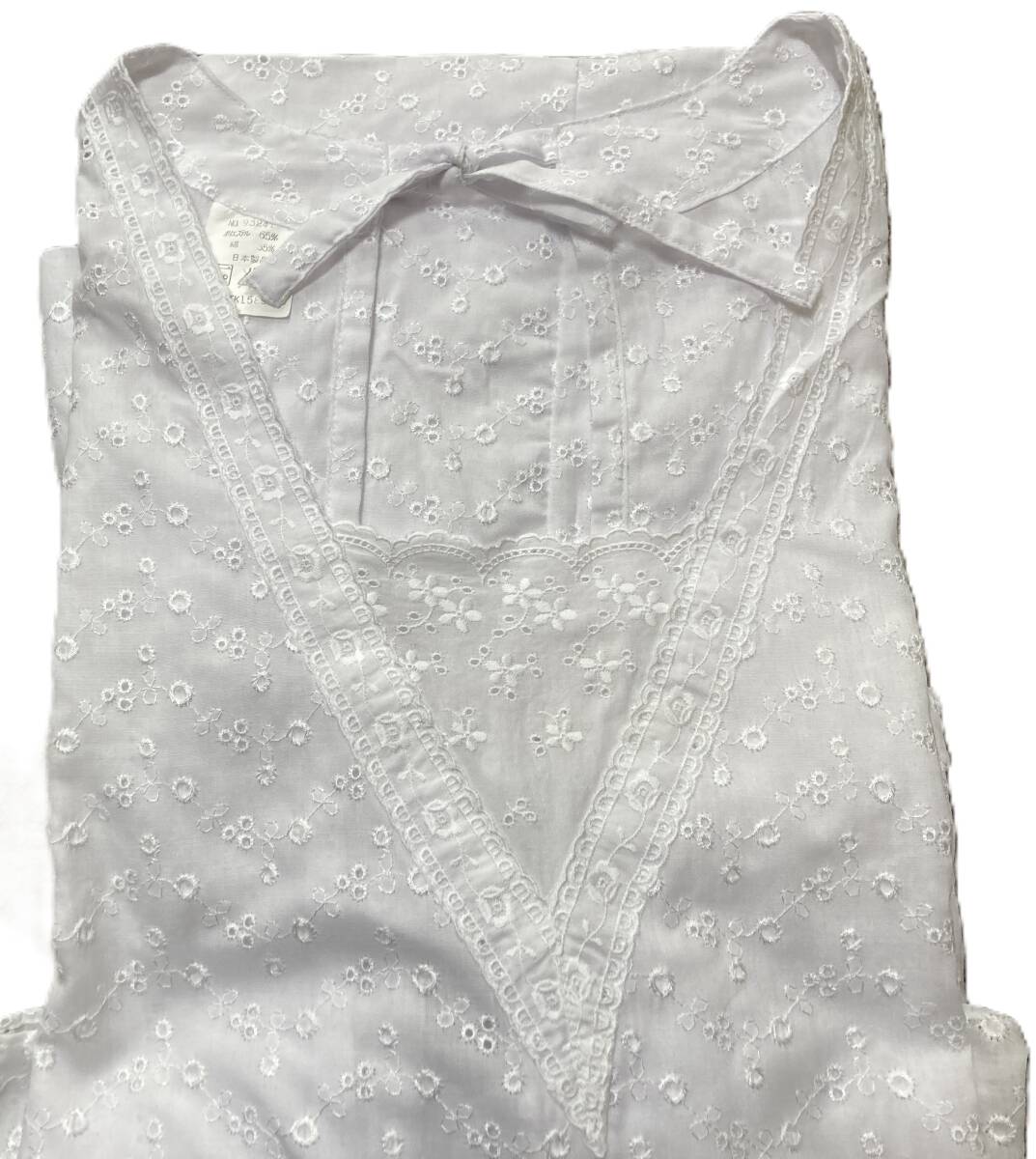 中古品★送料無料・レース生地で丈長の素敵なエプロン★ 白 ★ クリーニング済