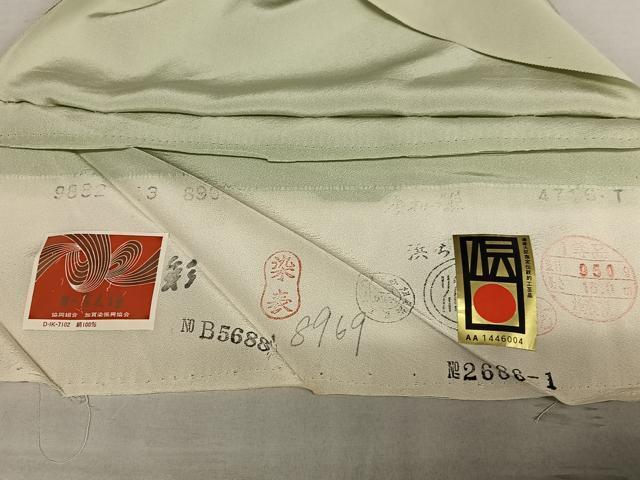 | 【正絹・未使用】 状態は接写画像のように下前おくみ・上前に薄い汚れ、後身頃にやけがございますが その他特に目立ったシミ汚れなどもなく大変良い状態です。 大変上質な逸品になります。 お安く出品致しますので、是非この機会にいかがでしょうか?