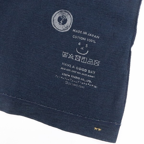 | 【FA475】新品◆45rpm フォーティーファイブ 1.4万 藍染 コットン 七分袖 Tシャツ カットソー インディゴ 2 | |