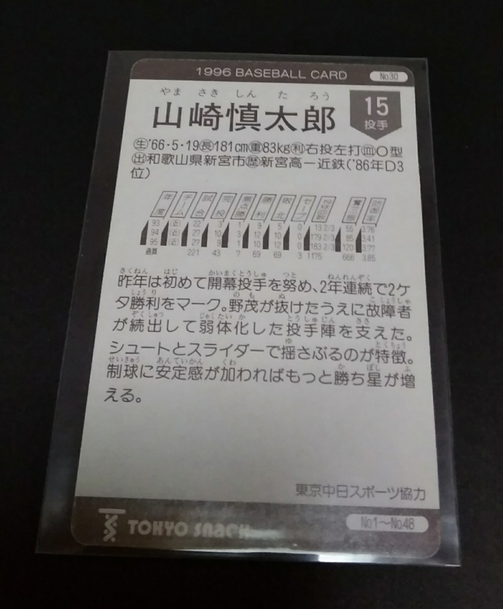 | 商品名稱 : | 1996年カルビー 山崎慎太郎(近鉄)No,30。 |