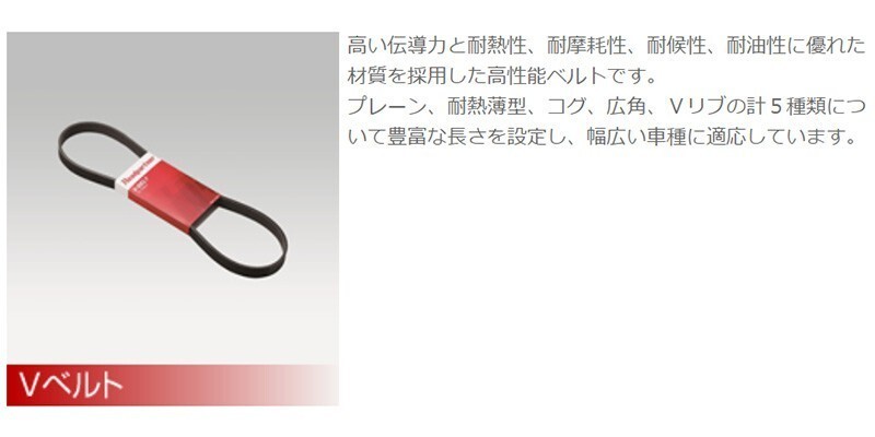 マツダが提供する国産車用の車検パーツ。 純正同等の品質を有し、売れ筋の車種に加え、交換時期を迎える対象車種にマッチングする豊富なラインナップを揃えています。 お客様に「安心」「安全」「快適」なカーライフをご提供します。 高い伝導力と耐熱性、耐摩耗性、耐候性、耐油性に優れた材質を採用した高性能ベルトです。 プレーン、耐熱薄型、コグ、広角、Vリブの計5種類について豊富な長さを設定し、幅広い車種に適応しています。 ※欠品または部品番号に表記のないベルトにつきましては同等の他メーカーもしくは純正品を別途ご用意致します。 検索ワード 車検 修理 ファンベルト ベルト パワステ パワーステアリング 純正 純正同等 おすすめ ランキング 交換 整備 ロードパートナー MAZDA 高品質 roadpartner | ||||
