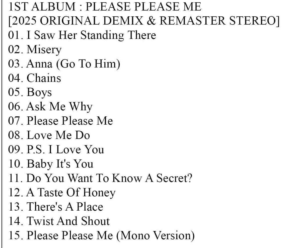 | 商品名稱 : | ◇THE BEATLE ザ・ビートルズ PLEASE PLEASE ME 2025 Original Demix & Remaster Edition (Sound Produced by XAVEL) |
