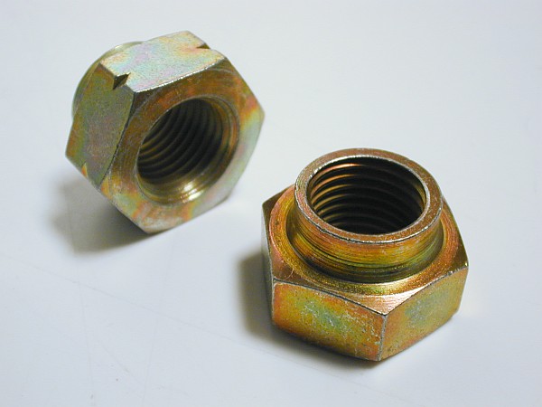 (旧車)フィアット500F/L/R、フィアット600及びフィアット126用のフロントハブナット、カシメタイプ、左右セット、1台分、新品です。 入札数量=1で左右各1個ずつ(順ネジ+逆ネジ各1個=計2個=1台分)のセットになります。 |