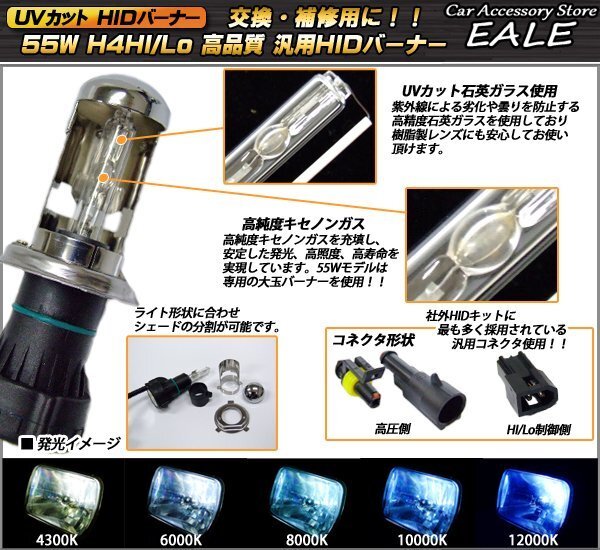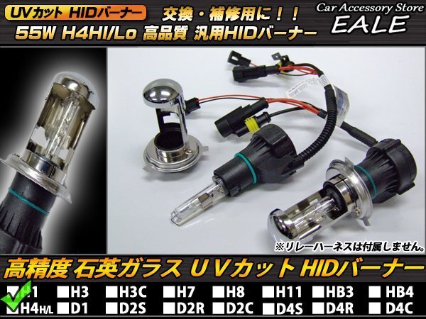 H4 HI Loスライド式 HIDバーナー55W 6000K UVカット HIDバルブ