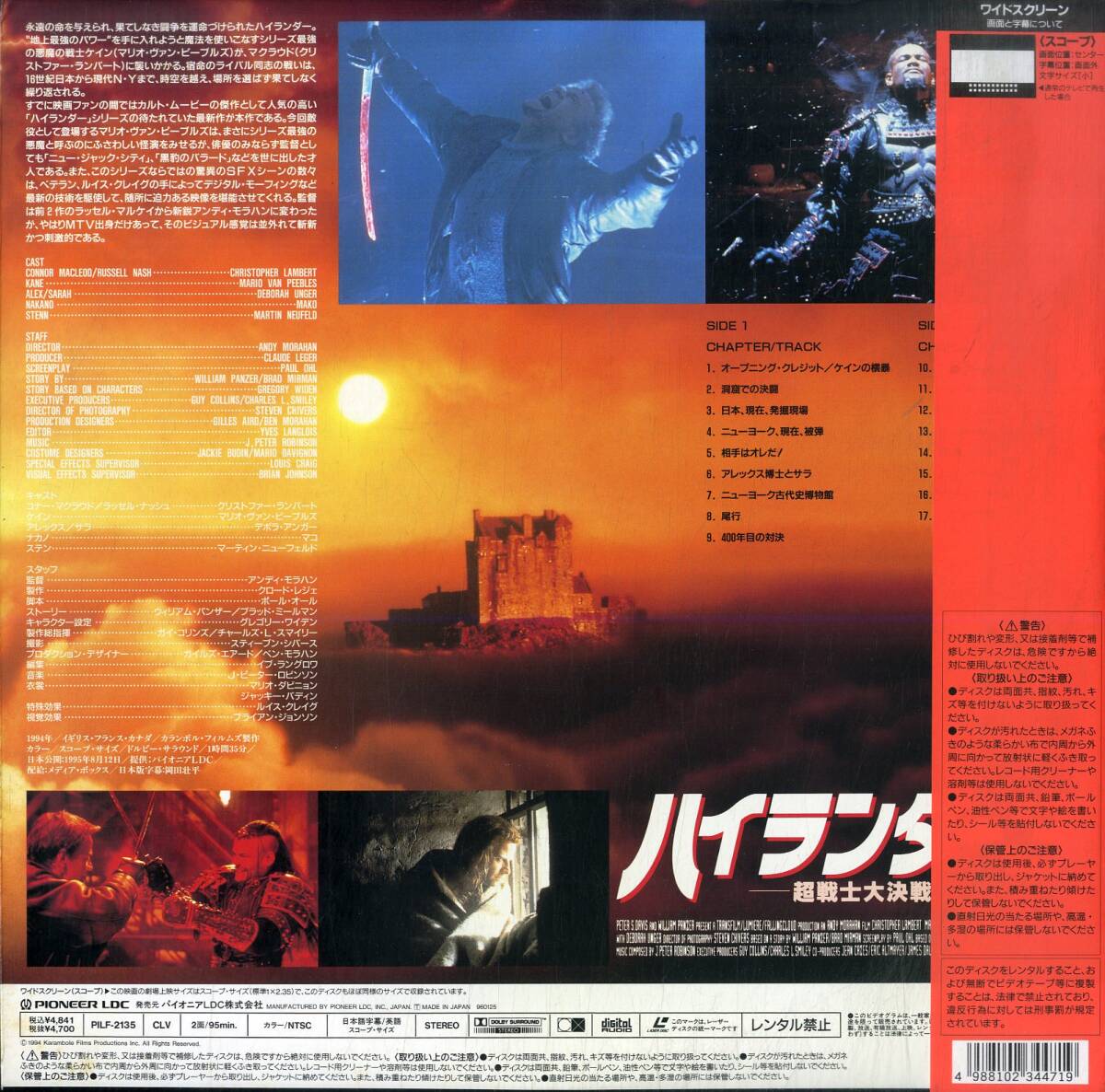 商品情報 アーティスト クリストファー※請確認是否動物毛皮。動物毛皮製品屬於華盛頓條約条約牴觸物品,無法國際運送。 ・ランバート タイトル ハイランダー3 Highlander 3 超戦士大決戦 The Sorcerer 1994 [Widescreen] (1996年・PILF-2135) 番号 PILF-2135 種類 LD1枚 プレス JAPAN 管理No. B00186004 付属品 コメント 【この商品はレーザー※雷射相關產品(需進、出口文件),因此無法協助購買。 ディスクです。ビデオテープ・DVD・ブルーレイではございません。再生には専用プレーヤーが必要です。】