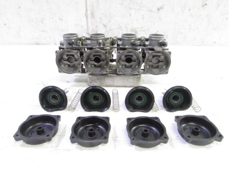 ■車両説明■ 【車名】GPZ1000RX 【車体番号】ZXT00A-022643 【年式】S63/04 【走行距離】28213km (メーター読み) 【車検】なし 【お渡しする書類】自動車検査証返納証明書 譲渡証明書 ■アピールポイント■ ☆絶好調!! KAWASKIの大人気リッターバイク GPZ1000RX を入庫致しました!! ☆機関良好!セル一発始動!エンジン圧縮は4発共にシッカリとあり、始動から敷地内試走行まですべて問題なく行うことが出来ました!! ☆外観特に目だった大きな破損は御座いませんでした! ☆まだまだエンジンパーツに対するお問い合わせが多く御座いますので今回もエンジンの方はいくらか解体させて頂き各エンジンパーツも同時出品させて頂いております! ☆その他実動車より取り外したまだまだ御使用になれる当時物人気純正オリジナルパーツが多数御座います!! ☆お客様に安心してご入札して頂けますよう始動確認、圧縮測定を行っております! ☆修理やレストアをお考えの GPZ1000RX のオーナー様、激安完全売り切りとなりますのでこのチャンスをお見逃し無くご入札宜しくお願いします!! 【オススメパーツ】 ☆希少!! 絶好調 純正 エンジン 圧縮OK!! ☆希少!! 純正 スリップオンマフラー 程度良好 刻印有 当時物!! ☆希少!! 実動車外し 純正 キャブレター 調子良好!! ☆希少!! 純正 ダイナモ オルタネーター ジェネレーター 実動車外し ☆希少!! 純正 ピックアップコイル/センサー チェーン等SET 実働車外し ☆希少!! 純正 セルモーター 動作確認済 ☆希少!! 純正 クラッチASSY ハウジング 実動車外し ☆希少!! 純正 フルスケール メーターASSY 280km 28213km 動作確認済 ☆希少!! 純正 アッパーカウル 破損なし ☆希少!! 純正 アッパーサイドカウル 左 右 ☆希少!! 純正 アンダーカウル 破損なし ☆希少!! 純正 ガソリンタンク 破損なし ☆希少!! 純正 サイドカバー 左右SET 破損なし ☆希少!! 純正 シートカウル テールカウル 破損なし ☆希少!! 純正 キーシリンダーSET 同鍵品 スペア付 ☆希少!! 純正 イグナイター CDI 実動車外し ☆希少!! 純正 イグニッションコイル 動作確認済 ☆希少!! 純正 フロントステップASSY 左右SET お買得!! ☆希少!! 純正 タンデムステップASSY 左右SET お買得!! ☆希少!! 純正 ウインカーSET 点灯OK ☆各部外装パーツ類 ☆各部ブレーキ/足回りパーツ類 ☆各部電装/イグニッションパーツ類 ☆各部灯火類等、、、、 こちらの車両より取外したパーツ一台分を◆コチラ◆ に出品しておりますので、ぜひご覧下さいませ。 ■商品詳細■ ☆フレーム・・・登録書類有! 目視で曲がりも御座いません! ☆エンジン・・・圧縮左から 約12.3kgf 約12.1kgf 約12.1kgf 約12.4kgf ☆フロントフォーク・・・インナーチューブ径 約40mm キャリパー取付ピッチ 約72mm ☆リアサスペンション・・・固定穴~固定穴 約310mm ☆Fホイール・・・16×2.50 ☆Rホイール・・・16×3.50 ☆Fタイヤ・・・ブリジストン 120/80-16 ☆Rタイヤ・・・ブリジストン 150/80-16 【外装】 ☆タンク・・・特に気になるような破損は御座いません! タンク内見える範囲に少し錆が見られますので燃料フィルターのご使用、または洗浄補修後のご使用をお勧めいたします! 一部軽い傷など御座います! ☆スクリーン・・・程度良好!! 特に気になるような破損は御座いません! 比較的状態の良い商品となります! ☆アッパーカウル・・・特に気になるような破損は御座いません! ☆アッパーサイドカウル右・・・特に気になるような破損は御座いません! 一部傷や塗装剥げが御座います! ☆アッパーサイドカウル左・・・特に大きな破損は御座いません! 一部ひび割れが御座います! ☆アンダーカウル・・・特に気になるような破損は御座いません! 底面一部傷が御座いますが比較的状態の良い商品となります! ☆Fフェンダー・・・特に気になるような破損は御座いません! ☆サイドカバー・・・左右共に特に気になるような破損は御座いません! ☆テールカウル・・・ 特に気になるような破損は御座いません! ☆Fシート・・・特に気になるような破損は御座いません! ☆Rシート・・・破れが御座いますので補修ベースにご活用ください! 【エンジン】 ☆すこぶる絶好調!! 始動性もよくアイドリングも安定し吹け上がりも抜群なエンジンとなります! ☆走行距離は28214km程のようで、4発ともにエンジン圧縮もシッカリとあり、まだまだ元気バリバリな実働エンジンになります! ☆動作確認の為に敷地内を試乗致しましたが、問題なく変速でき特に気になるような異音等は御座いませんでした! ☆外観に関しまして特に気になるような破損は御座いません! ☆始動確認済で圧縮もシッカリとあるこちらの絶好調実動エンジンを、是非この機会に如何でしょうか! 【足回り】 ☆フロントフォーク・・・程度良好!! 目視で曲がりもなく、外観特に気になるような破損は御座いません!取り外し前に数回ボトムをさせてみましたところ少しOIL滲みが見られました! 比較的状態の良い商品となります! ☆スイングアーム・・・目視にて曲がりもなく、外観特に気になるような