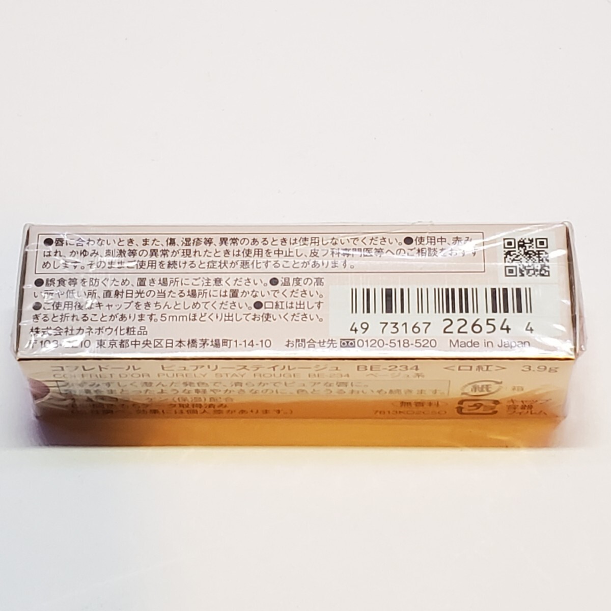 | 商品名稱 : | COFFRET D'OR コフレドール ピュアリーステイルージュ BE-234 ベージュ系 (口紅) 3.9g 未開封品 |