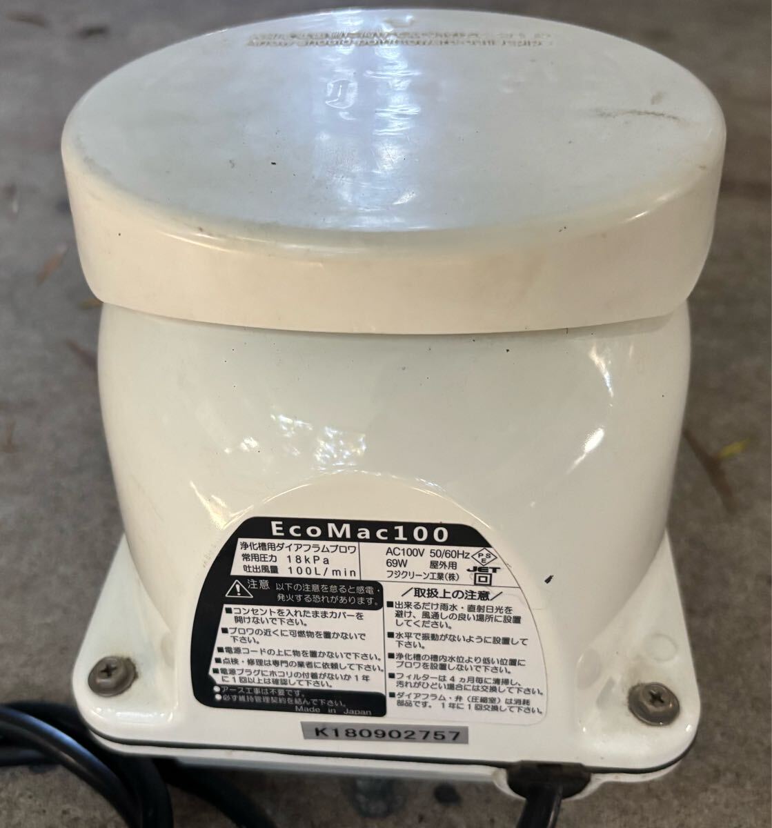 | 商品名稱 : | 内部新品交換済み 風量新品同様 浄化槽用ブロワー エコマック 100 ECOMAC フジクリーン エアーポンプ 浄化槽 |