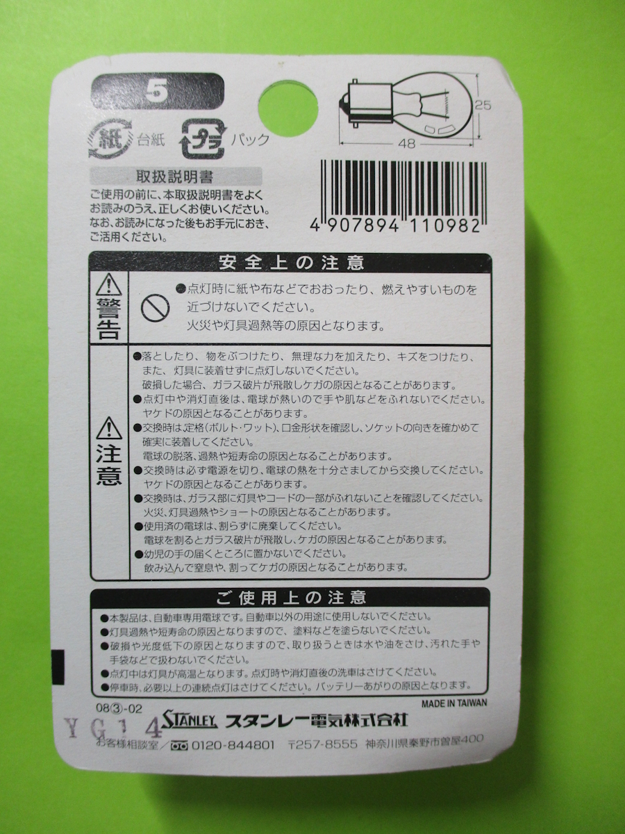 | 商品名稱 : | 新品 自動車 バルブ スタンレー S25シングル(BA15s) 12V 21W 2個/パック 送料185円 #1 |