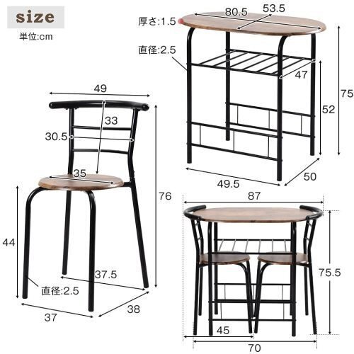 円形 ダイニング 3点セット ダイニングテーブル ダイニングセット 食卓 チェア2脚 幅70 コンパクトサイズ 2人掛け おしゃれ