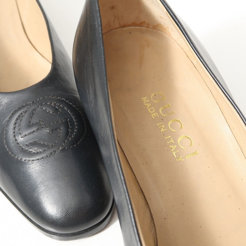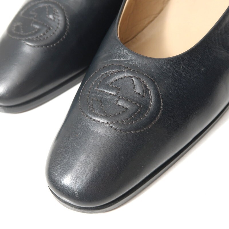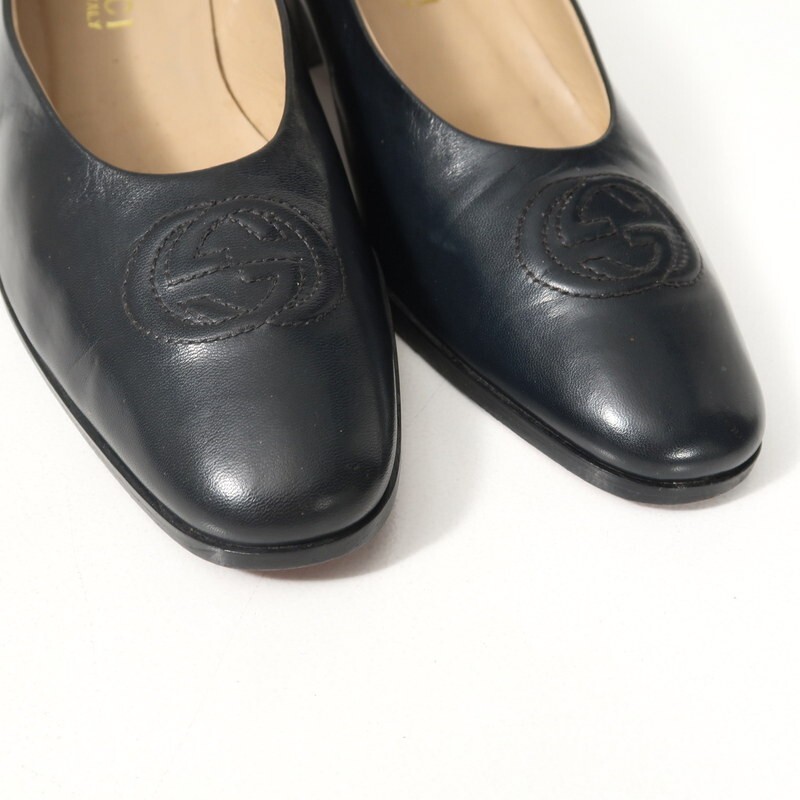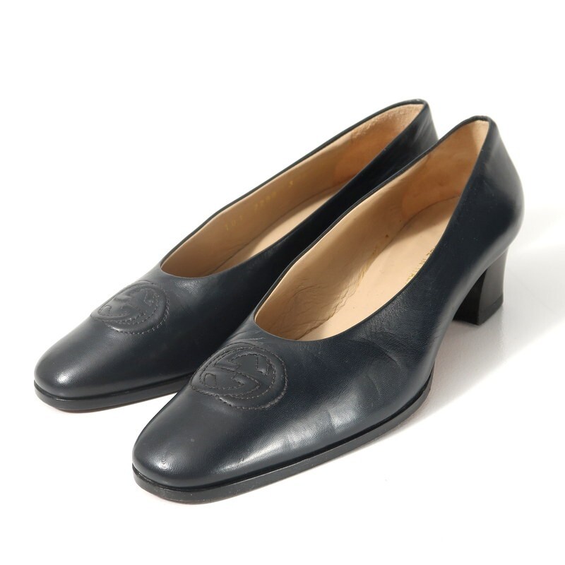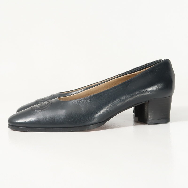 | GS2788*イタリア製 VINTAGE GUCCI グッチ ダブルG GGロゴ インターロッキングG レザーパンプス 37.5C(24cm相当) 靴 ネイビー | |||
