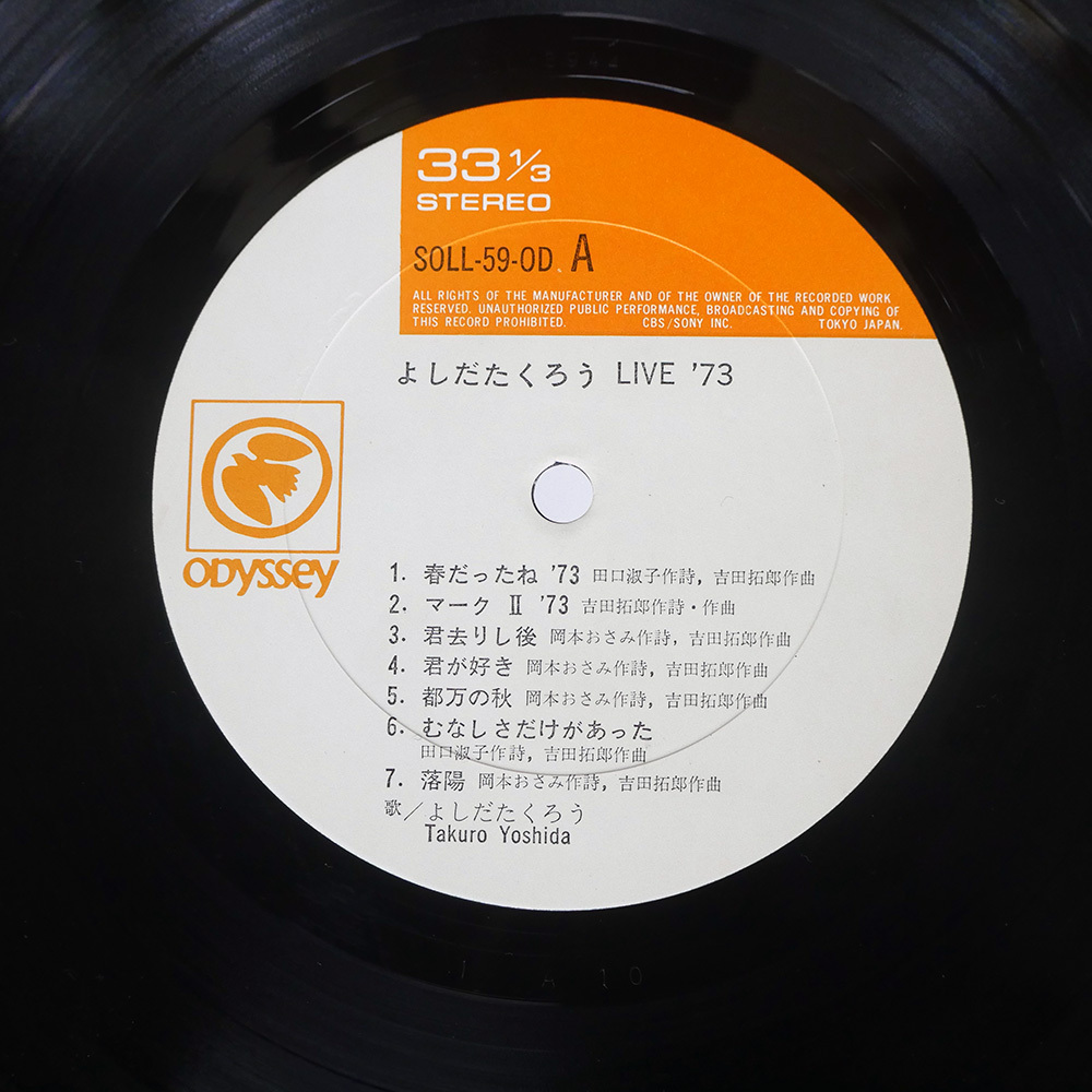 | 商品名稱 : | 帯付き 国内盤 吉田拓郎/LIVE ’73/ODYSSEY SOLL59OD LP |