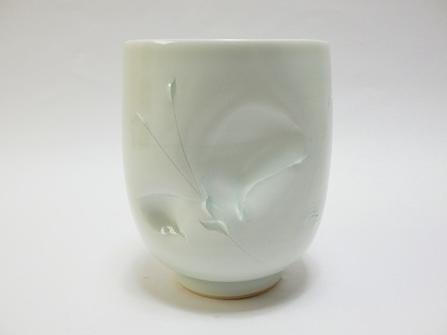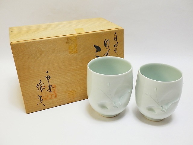 ★ 平安 徹造 白磁 組湯呑 夫婦湯呑 共箱 ★ H801 Kyo ware pair teacups