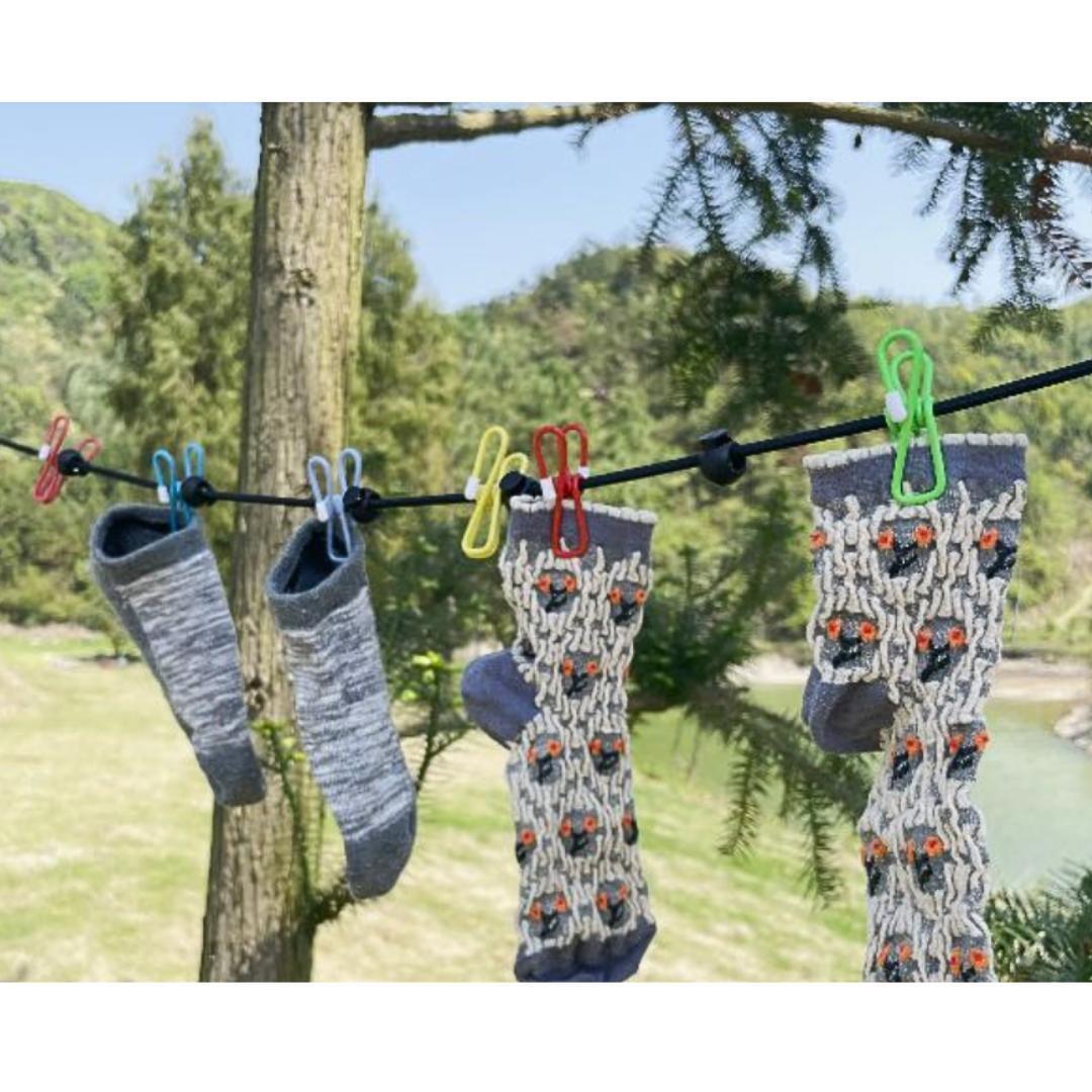 【物干しロープ|12個のクリップ付き携帯型ランドリーライン】 旅行にも!室内干しにも!使い勝手抜群の多機能ロープ。 しっかり固定!風にも強い設計 クリップ12個+滑り止めバックル13個付きで、洗濯物をしっかり固定。風で飛ばされたり、寄ってしまう心配を軽減します。 取り付け簡単なフック付き仕様 両端のフックで、テント・木・バスルーム・ベランダ・ランドリールームなど、あらゆる場所にサッと取り付け可能。 持ち運びラクラク!旅行・出張・アウトドアに最適 全長約1.8mで使いやすく、軽量&コンパクトに折りたためるので、バッグに忍ばせておけば出先でも大活躍! 室内干しにも便利!省スペース収納 雨の日や黄砂対策にも◎。使わない時は小さく丸めて収納OK。省スペースで邪魔になりません。 アウトドア派も、部屋干し派もこれ一本! シンプルなのに高機能。1本持っておくと何かと重宝する物干しロープです。 【商品詳細】 サイズ 長さ:約1.8メートル 重量 約200g 【注意事項】 ・海外輸入品のため、縫製に甘い箇所や小さなキズ・汚れがある場合があります ・検品のため、一度開封しております ・防水対策を施した簡易梱包で発送いたします ・画像は見え方により実際の商品と色味が多少異なる場合があります ・サイズに多少の誤差が生じる場合があります 【返品・交換について】 ・万が一、明らかな不良品があった場合は、評価前にご連絡ください。最後まで対応いたします ・お客様都合(イメージ違い・サイズ間違い等)による返品・返金は対応できかねますので、ご了承ください 在庫限りの人気商品ですので、お早めにご検討ください! >