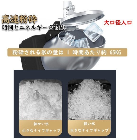 ★大口径投入口、氷粉砕能力は1時間あたり約65kgです。