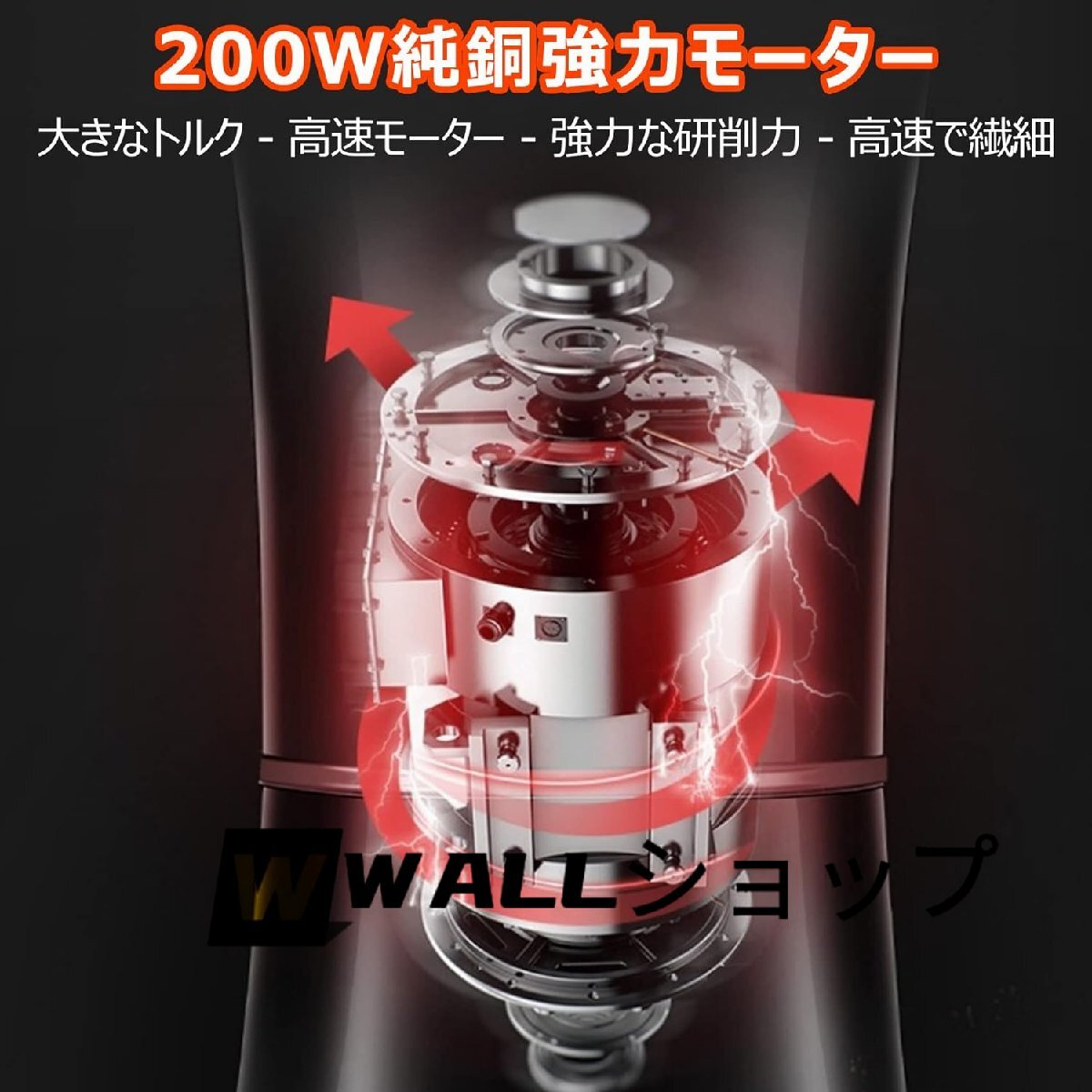 【ハイパワー】200wハイパワーモーターを採用しており、より時短にコーヒー豆を挽けます。特製ブレードにより、挽きムラが軽減できて、より満遍なく砕けます