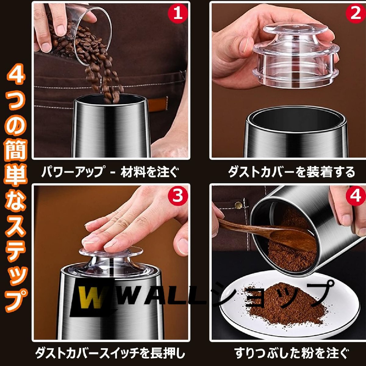【操作簡単】 ■ボタン1つのシンプル設計で、電動ミルはミルミキサーより手間がかからず、初心者でも簡単に使える。便利に研磨することができます。 1材料を入れます。2カップを覆って二重保護します。3ボタンを押して、粉砕を開始します。押す時間を調整することで、挽き具合を自由に調節できます。