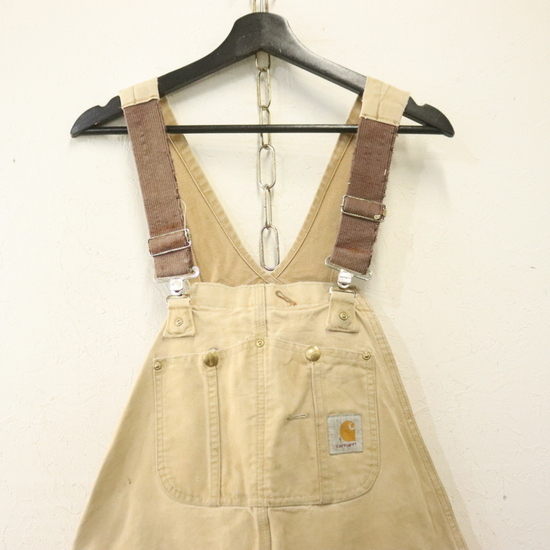 J981 90sビンテージ カーハート ダックオーバーオール エプロン付き USA製■1990年代製 約XLサイズくらい ブラウン ワーク ダブルニー