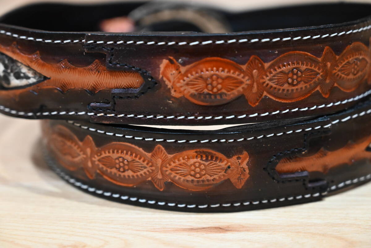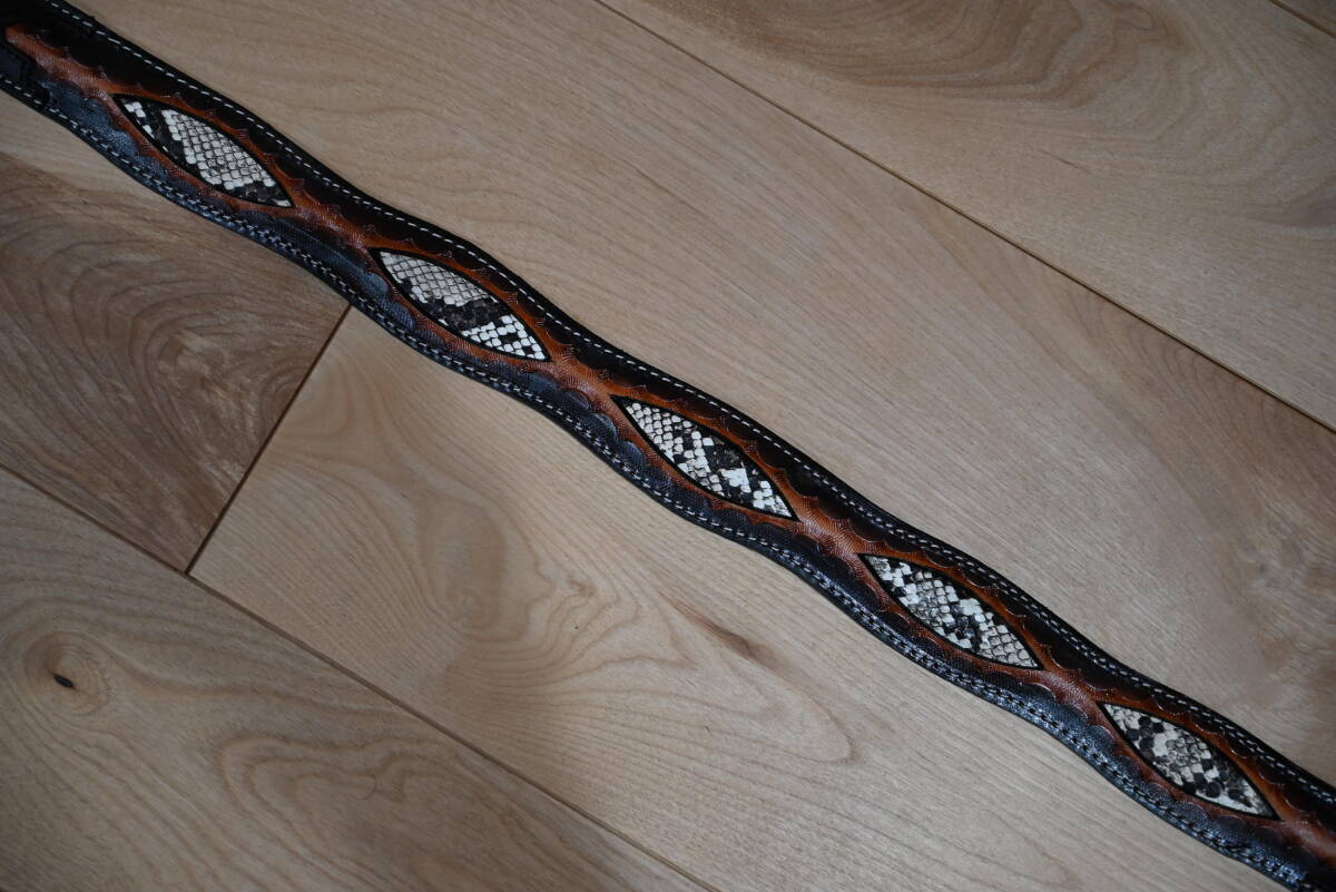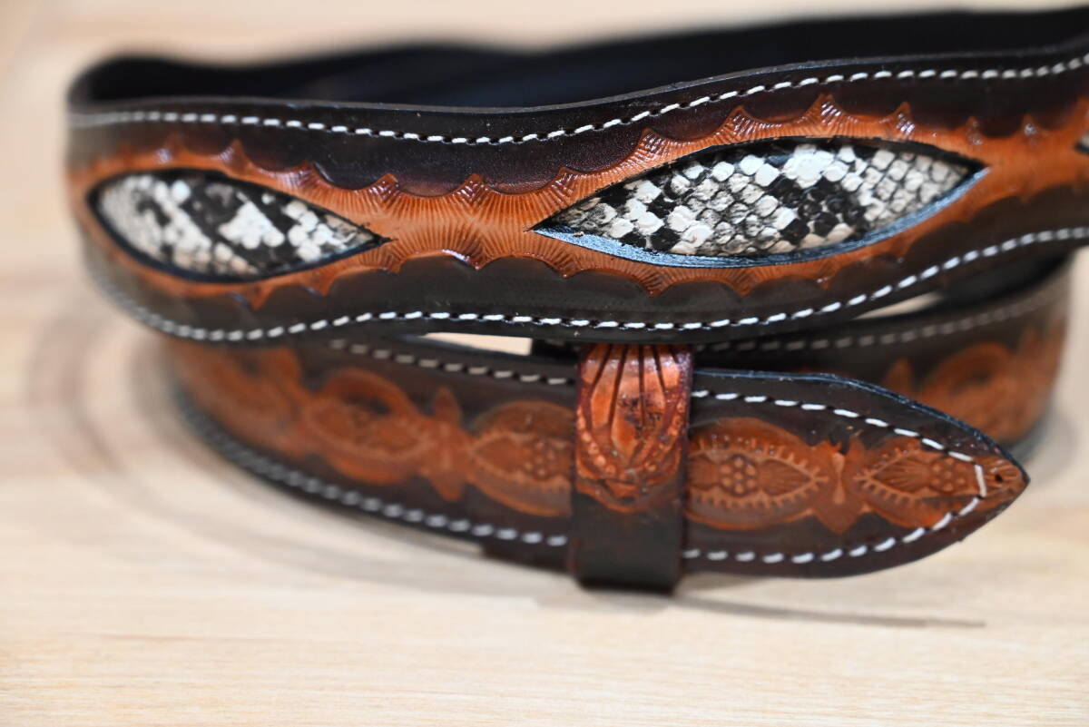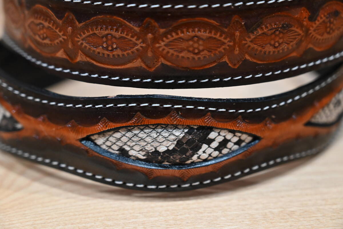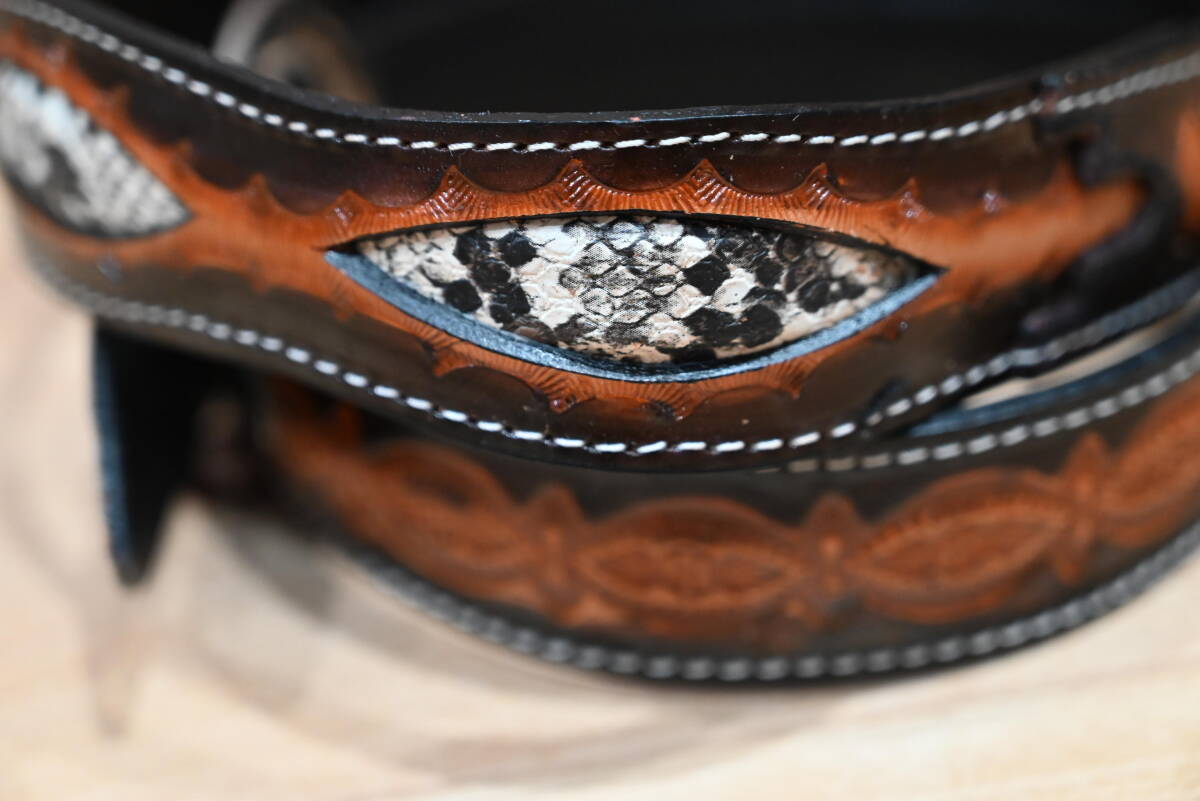 | 商品名稱 : | ★ハンドメイド レザー カービング柄 ウエスタンスタイルベルト 幾何学×ヘビ柄模様★ダークブラウン! |