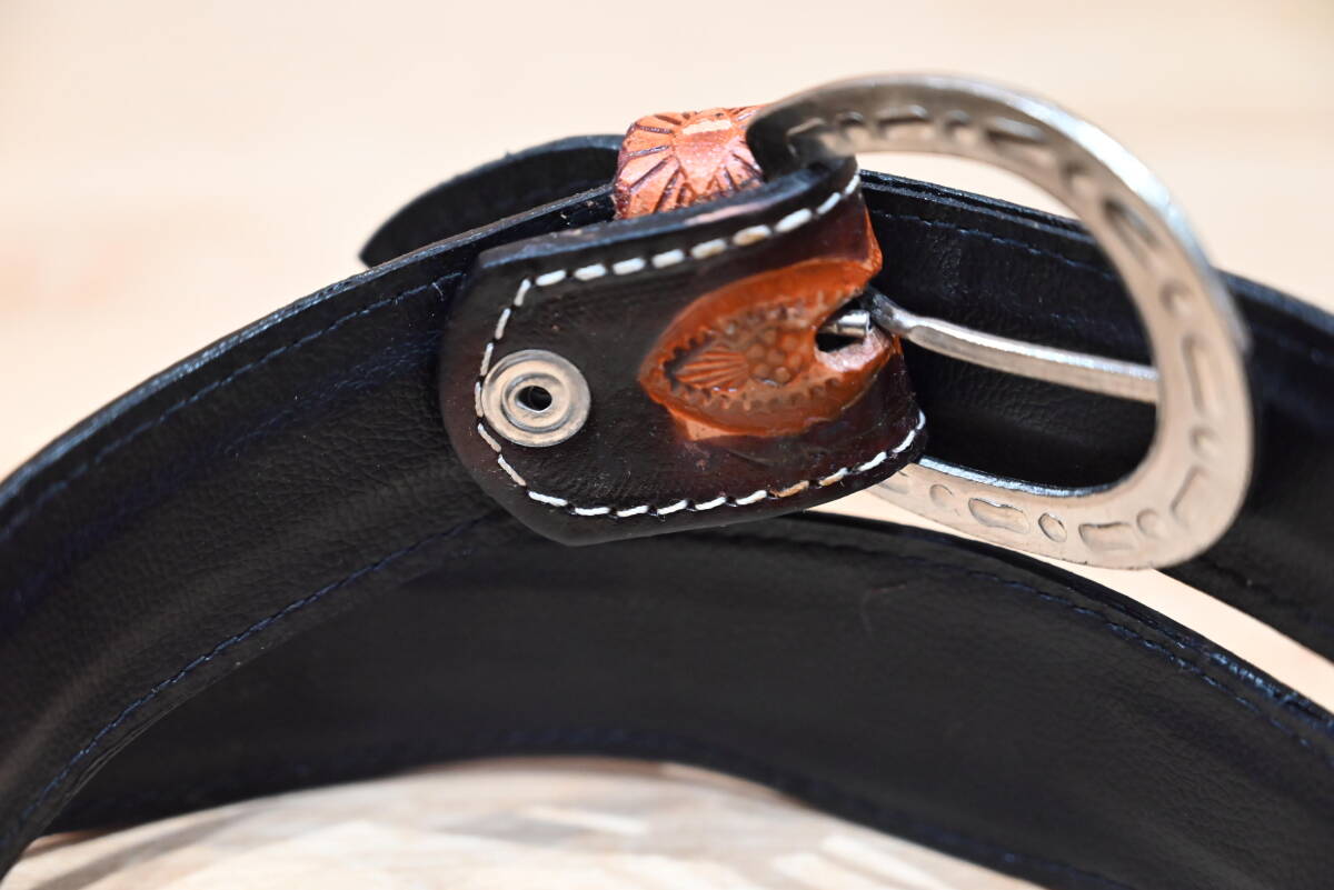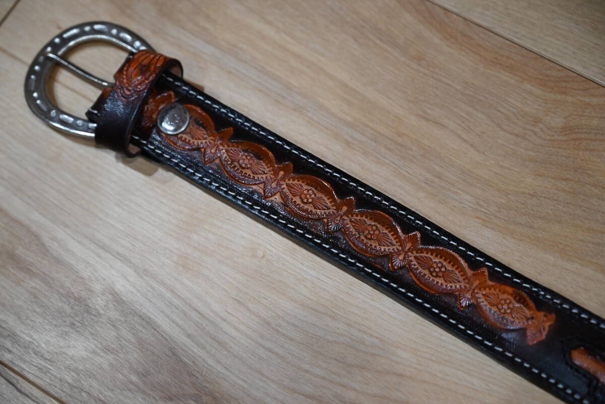 | 商品説明 | 牛革で作成した、カービング柄 ウエスタンスタイルベルトです。 色はダークブラウンで、未使用品になります。 サイズは、ベルト本体は116㎝、ベルト幅は広い箇所は、4.3㎝・狭い箇所は3.7㎝、穴開け箇所は3.5㎝程になります。バックルは6㎝程になります。 両側に幾何学的な模様をデザインして、中心に5ヵ所ヘビ柄模様を楕円状にデザインしています。ベルトの形も波型なので、ウエスタン調の強い品物になります。間にベルト穴あけ用の芯を中心に入れて仕上げています。厚さは3㎜程になります。 バックルの部分は、ボタンタイプなので、交換も可能になっています。本体と合うように馬蹄型のバックルを付けています。 ベルトの穴あけは、購入者の方にお願いします。フリーサイズで可能になるよう当方では加工無しの状態で出品致します。 発送は、定形外郵便を利用します。送料は、450円になります。 こちらは、ハンドメイドなので、多少の傷や汚れ等はご了承下さい。細かい点まで、気になる方はご遠慮下さい。 |