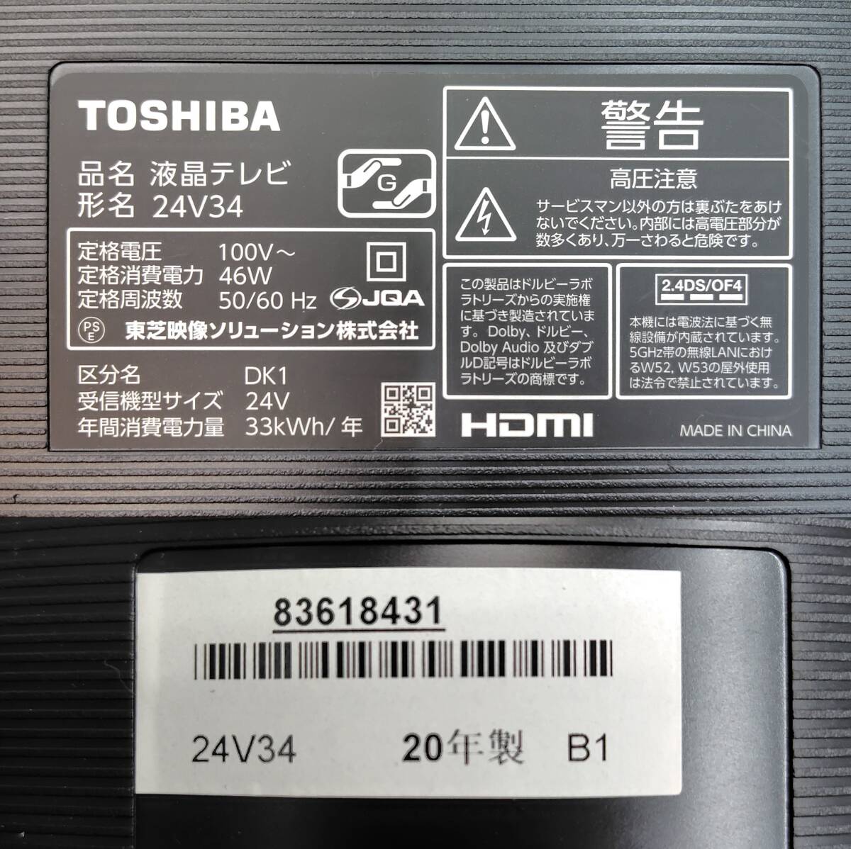 【送料無料】TOSHIBA REGZA ◆ 24V型 ハイビジョン液晶テレビ 24V34 2020年製