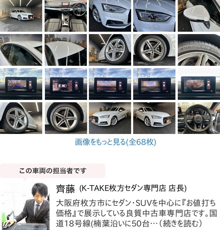 | 商品名稱 : | 【諸費用コミ】:2018年 アウディ A5スポーツバック 2.0 TFSI スポーツ 禁煙車 黒ハーフレザー メーカーナビ |