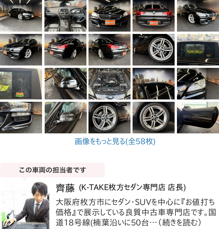 | 商品名稱 : | 【諸費用コミ】:2014年 BMW 6シリーズクーペ 640i Mスポーツ パッケージ 中古車 関西 大阪 兵庫 京都 奈良 和歌山 滋賀 |