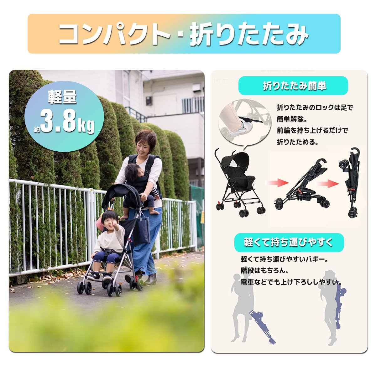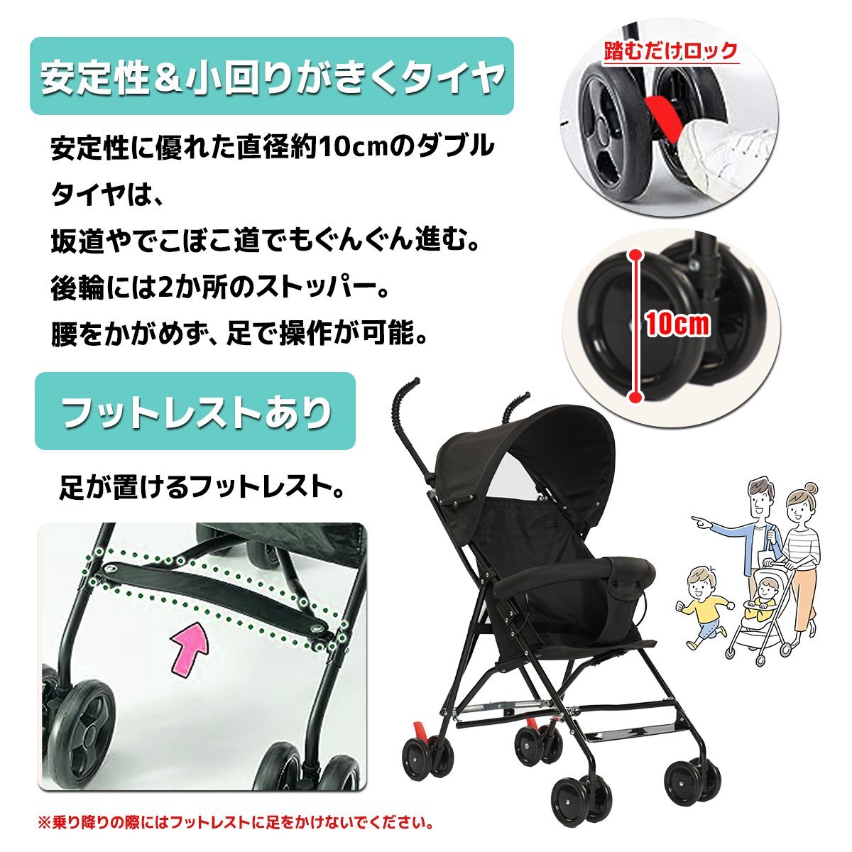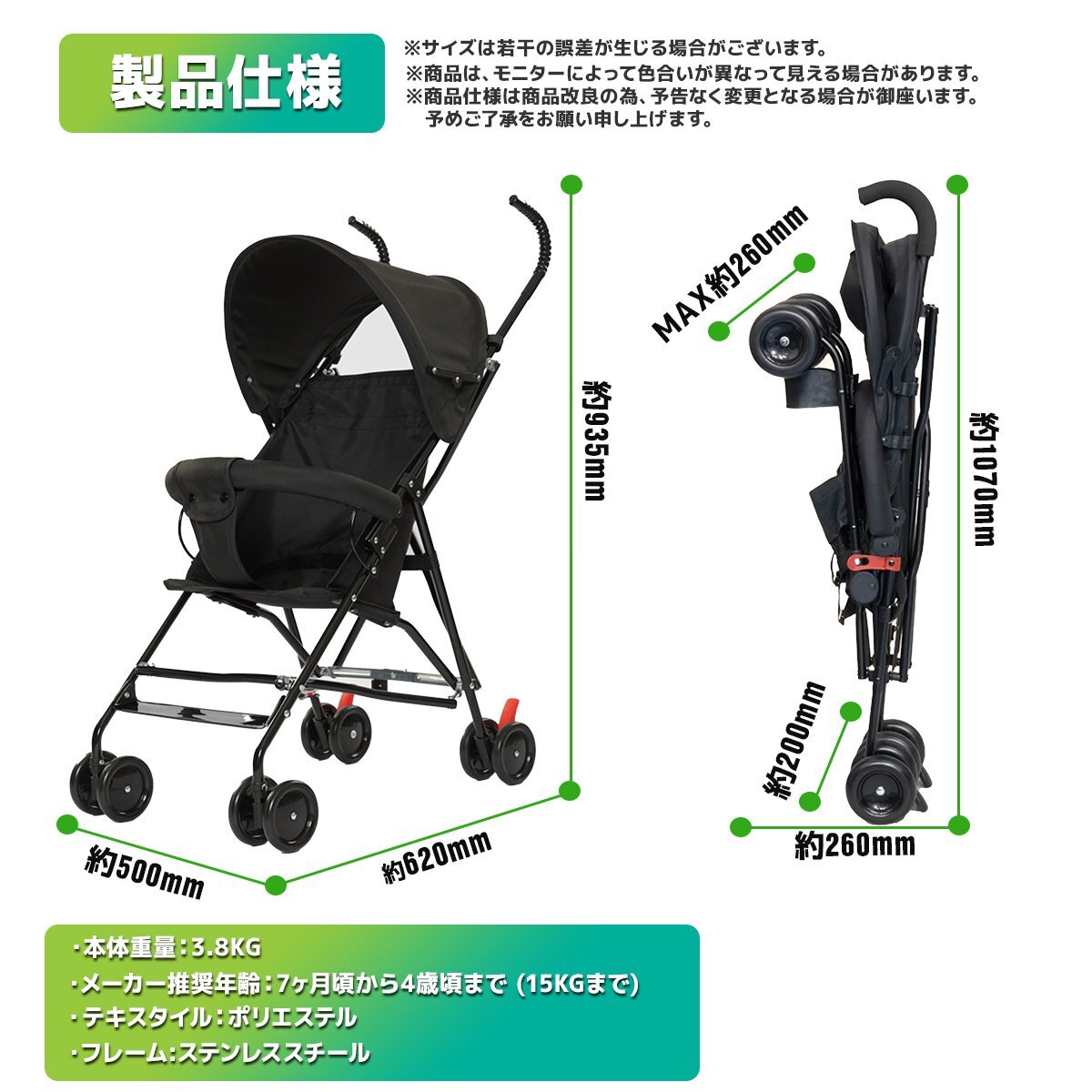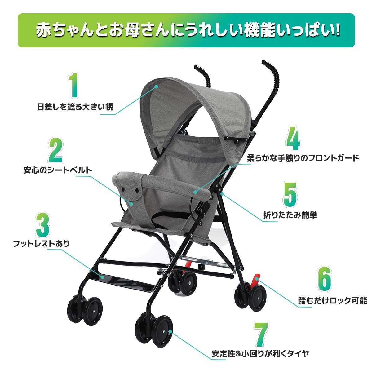 ★簡単に折りたためる、生後7ヵ月から使用できるストローラー