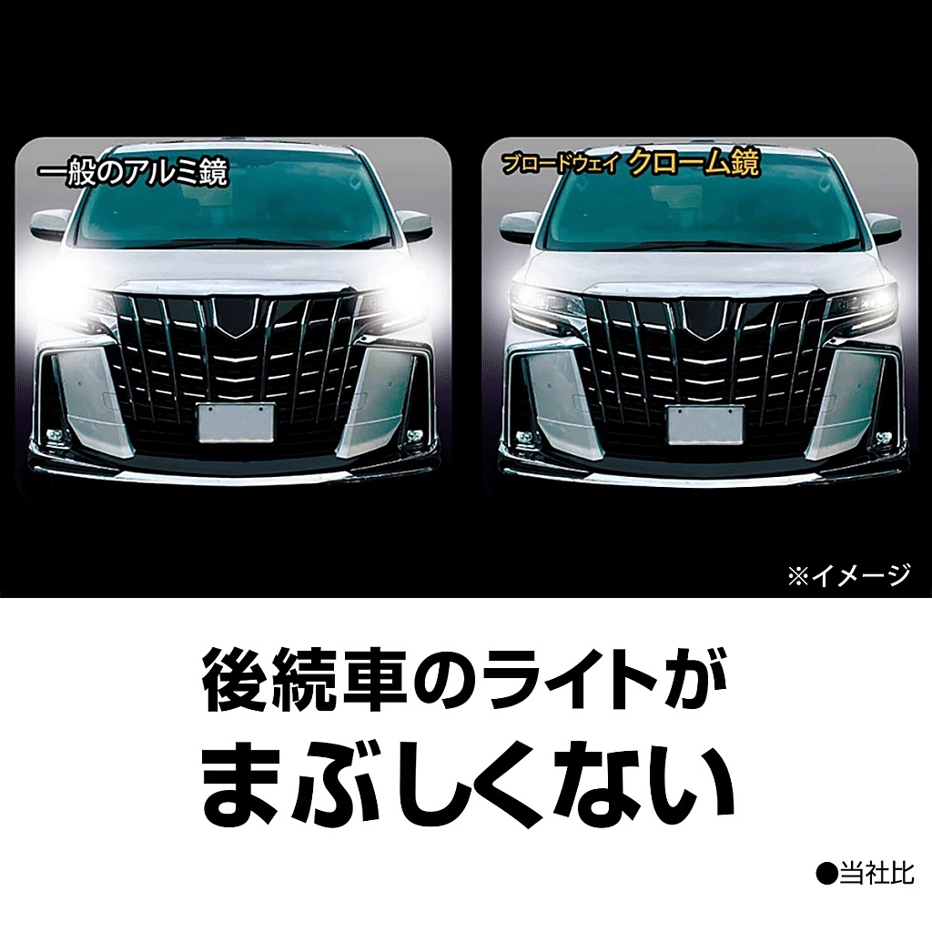 後続車のライトが眩しくない高精度クローム表面鏡採用 &