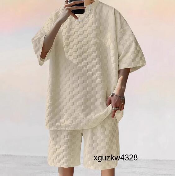 セットアップ メンズ 半袖 半ズボンジャージ上下セット 半袖シャツ ショートパンツ チェック柄 通気 吸汗 海 ビーチオシャレS~3XL/XS285