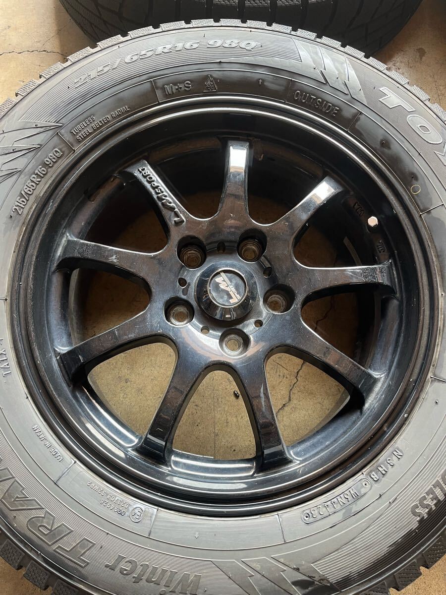 2023年製 バリ山 SUV ミニバン用 215/65R16 スタッドレス 4本 トーヨー トランパスTX 美品アルミ 7J オフ45 114.3 5H ハブ径73mm