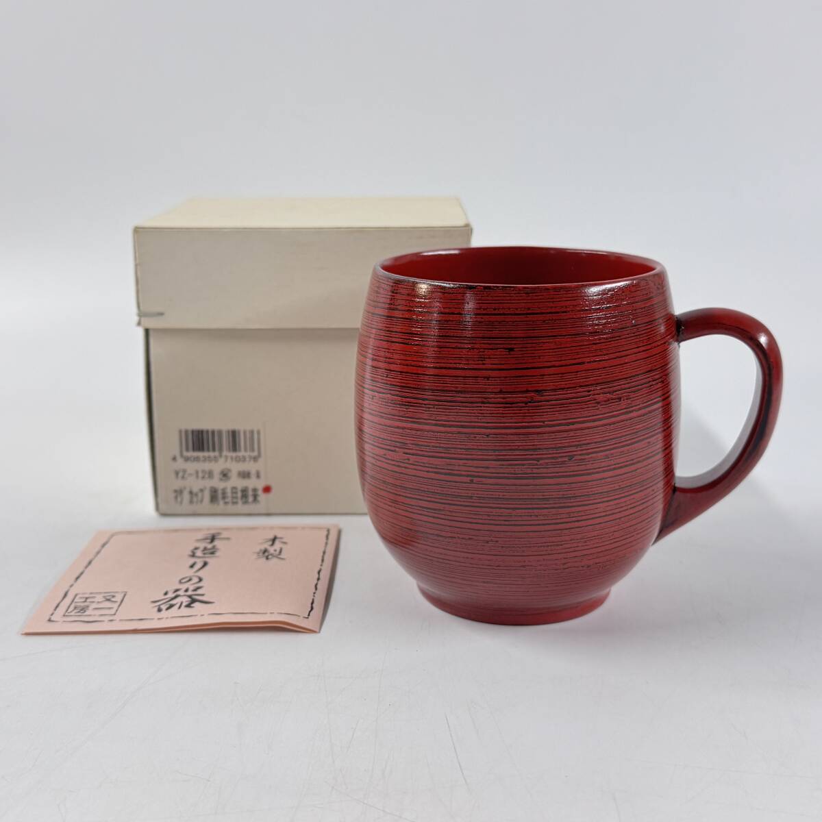 未使用 漆芸漆器 輪島塗 又一工房 マグカップ 刷毛目根来 幅11.3㎝×奥行8.5㎝×高さ9.1㎝ 栞 経年保管品 現状品故障品、問題商品、可能無法修理,請注意の出品です。