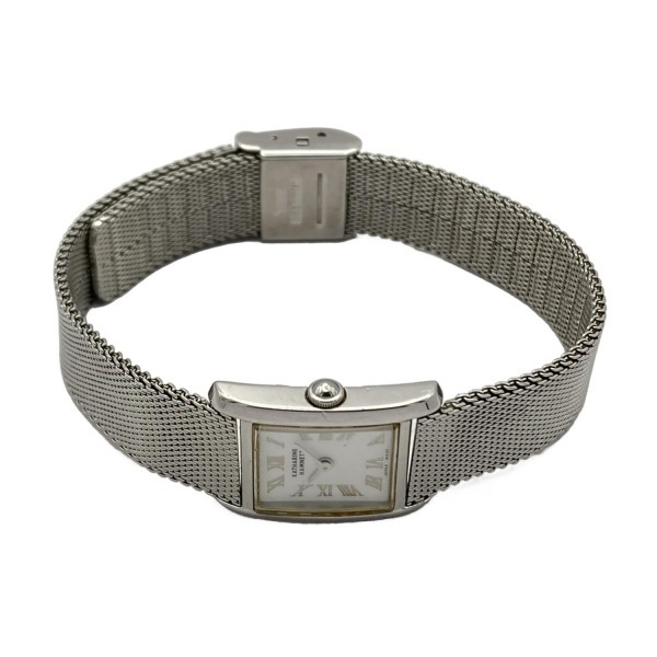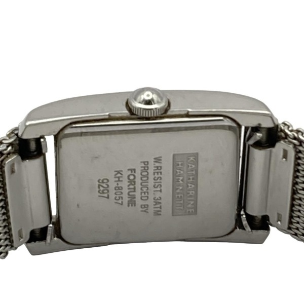商品説明 ブランド:KATHARINEHAMNETT(キャサリンハムネット) 型番:KH-8057 コンディションレベル:【6】ふつうに使える 実寸サイズ フェイス : 約 1.4 cm × 1.2 cm ケース : 約 2.3 cm × 1.5 cm (リューズ含まず) ベルト幅 : 約 1.2 cm 腕周り : 約 16 cm 商品詳細 ジャンル:腕時計 文字盤カラー:白 ベゼルカラー:シルバー ケースカラー:シルバー ベルトカラー:シルバー ベルトの素材:SS (ステンレススチール) 男女別:レディース ムーブメント:クォーツ 動作状況:【確認出来ず】 ※時計内部の状態確認がとれておりませんので、 故障している場合にはお客様ご自身で修理をしていただく必要がございます。 修理代負担・返品はお受けできませんのでご了承の上、ご入札くださいませ。 シリアル:9*** 付属品:なし付属品について コンディションの備考 ※あくまで商品の外観ダメージです。動作状況をご確認の上、ご入札くださいませ。 【ケース】 ・全体的 ⇒ 傷 ・風防 ⇒ くすみ 変色 【ベルト】 ・全体的 ⇒ 傷 ・表面 ⇒ 変色