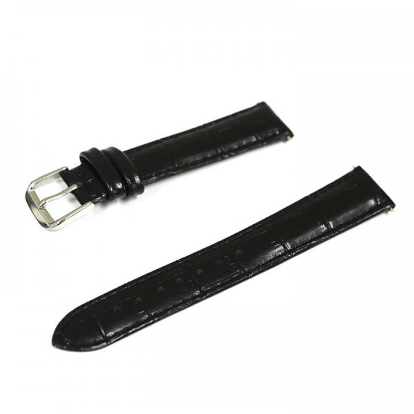 腕時計 ベルト 22mm レザー クロコダイル型押し ブラック バネ棒付き バンド L1 交換 革 牛革