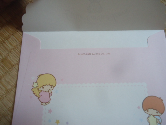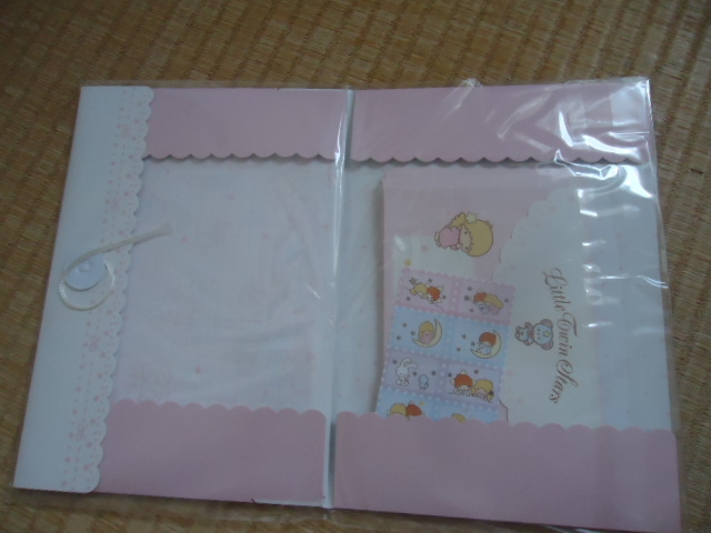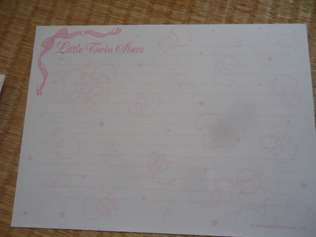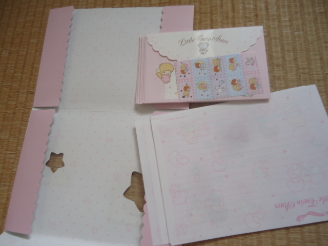 2005年製。袋入りでしたが撮影のため開封いたしました。便箋(19.8×14.2㎝)20枚(柄は1種類)、定型封筒(15×10cm)10枚(柄は1種類)、シール10ピースのセットです。ざっと見るかぎり特筆すべきダメージはないようでしたが、古いものですので軽微な焼け汚れ折れ等のダメージはあるものと思ってください。トラブル回避のため、少しでも状態が気になる方は入札を御遠慮ください。