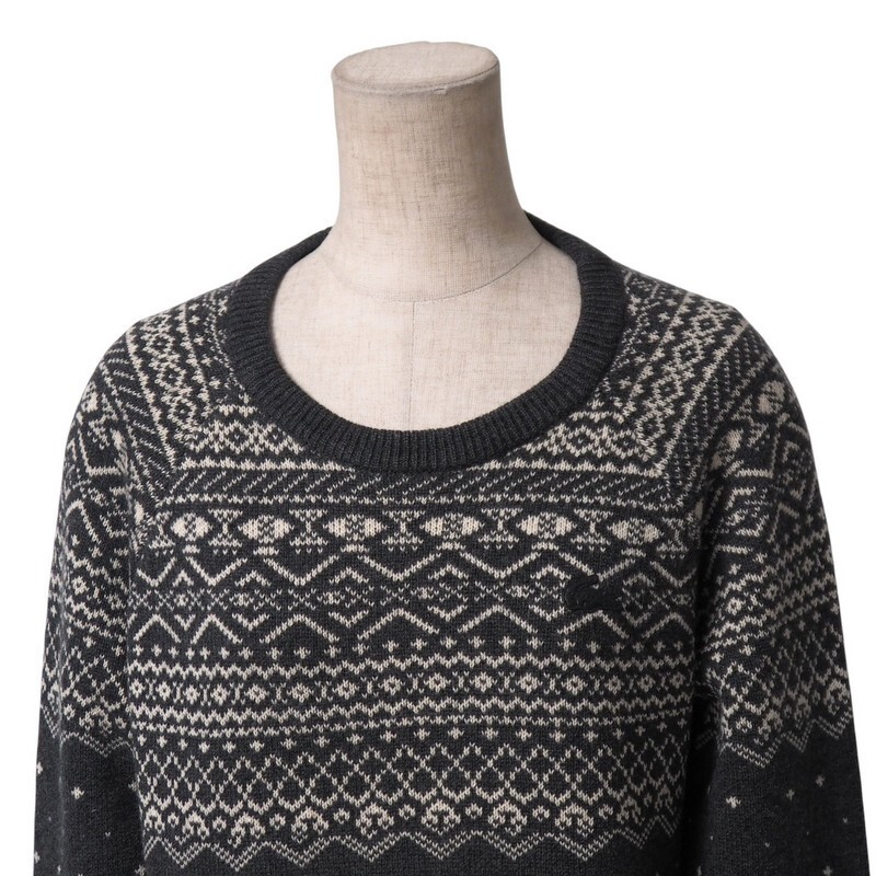 | TI8156□ラコステ/LACOSTE フェアアイル柄 ワニワッペン ウールニット 長袖 ワンピ―ス/チュニック サイズ38 グレー×ホワイト系 | |||